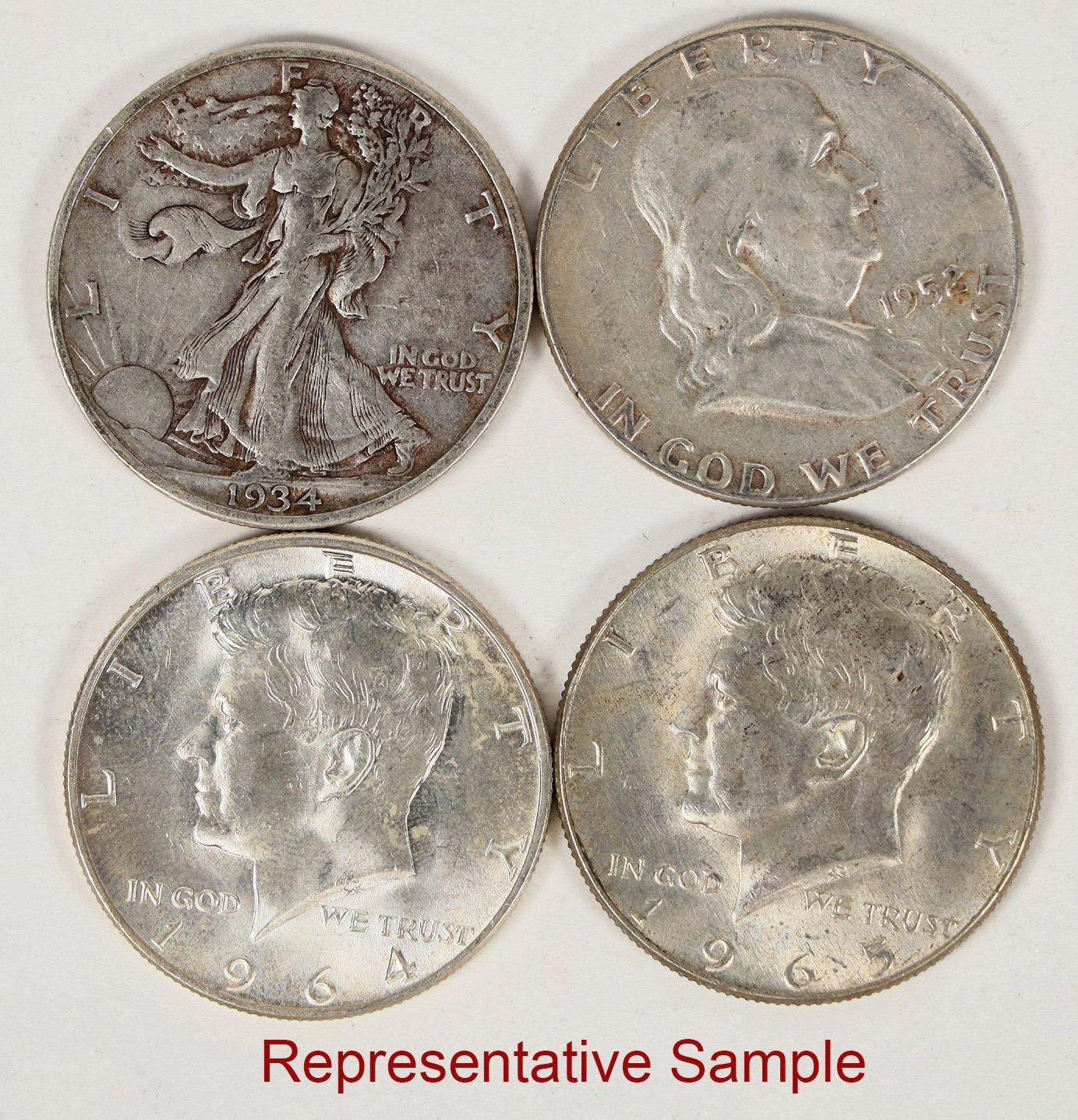 Circulated United States Silver dollars: Walking Liberty (9); Franklin (26); 1964 Kennedy (23); Kennedy 40% (3). Some AU-BU, the Walking Liberties are VG-EF.