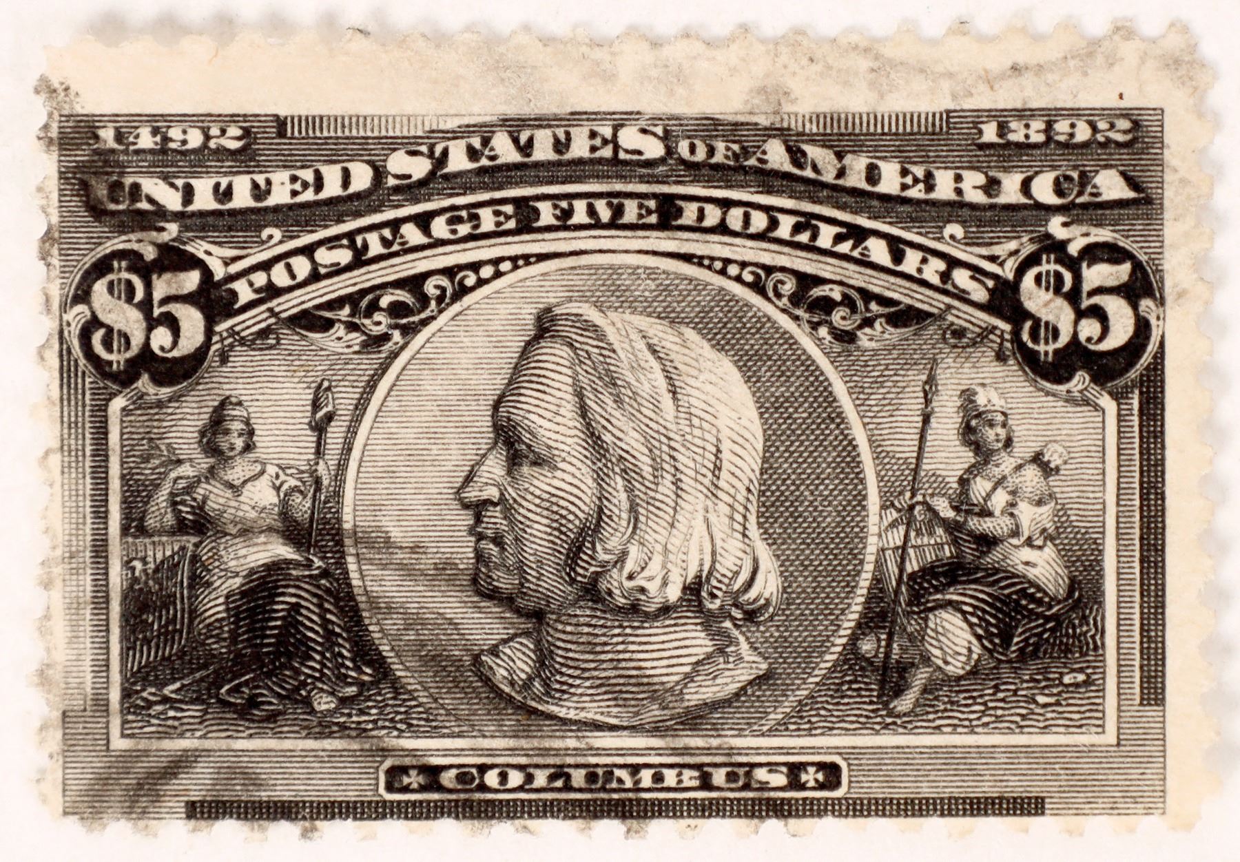 Key to the set, used, F-VF, Black Columbian Scott #245. First Day of Issue: January 2, 1893. Quantity issued: 27,350 (5,506 destroyed). Printed by: American Bank Note Company. The engraving was done by Alfred Jones and Charles Skinner. The 1893 Columbian Exposition stamp series was like nothing before it. The series was used to advertise the Exposition: the first time postage stamps were used to promote a commercial event. The Columbians were the first U.S. commemorative stamps, and they created a worldwide phenomenon. No Gum. Previously hinged. Cancelled. Poor centering. Perforation touches design on bottom.