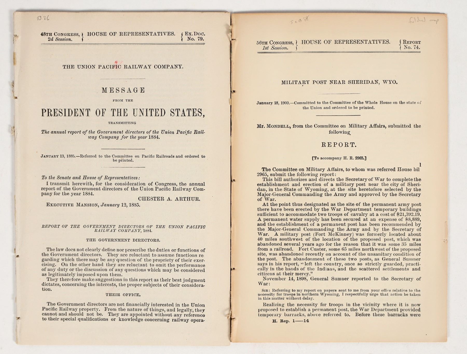 Two booklets, about 20 pages each. Good condition, though these give the appearance that they may be individual sections torn from a larger book. Military booklet has two large fold out maps. Measure 6x9. See photo.