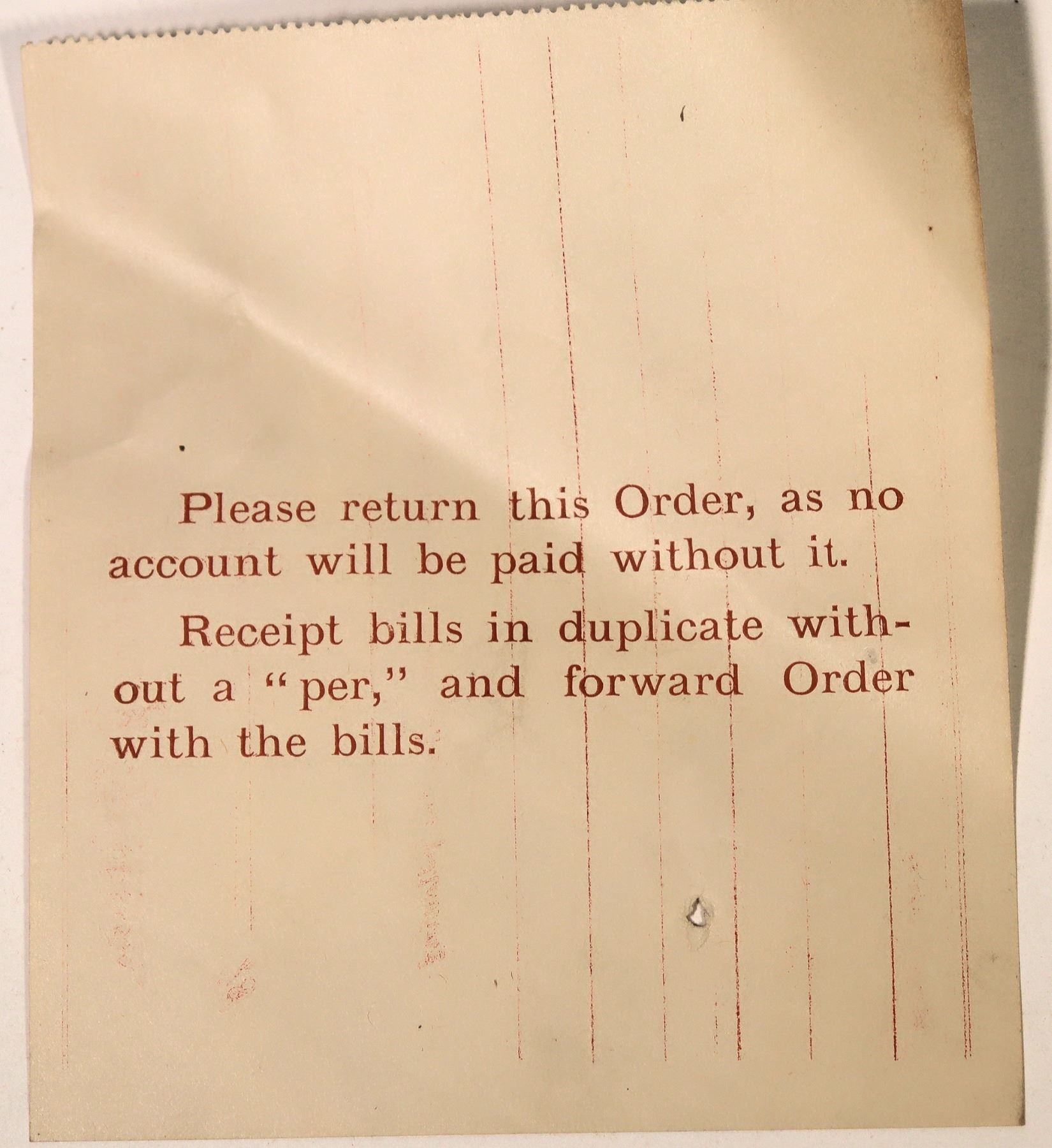Rare order form from US Assay Office at Helena, 1895 for chisel handles, Atlantic Red Oil and more. Signed by assayer in charge Branden. Montana Helena 1895