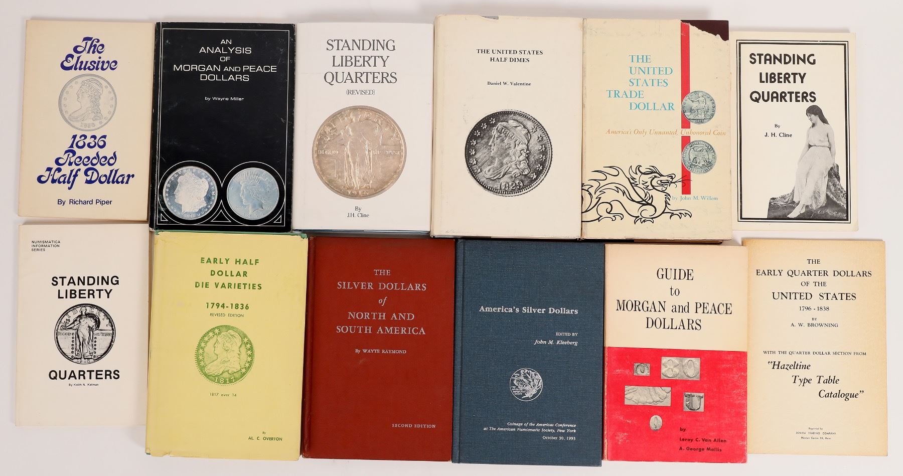 13 US coin historical references-5x dollars, 2x half dollar, 5x quarters, 1x dimes.