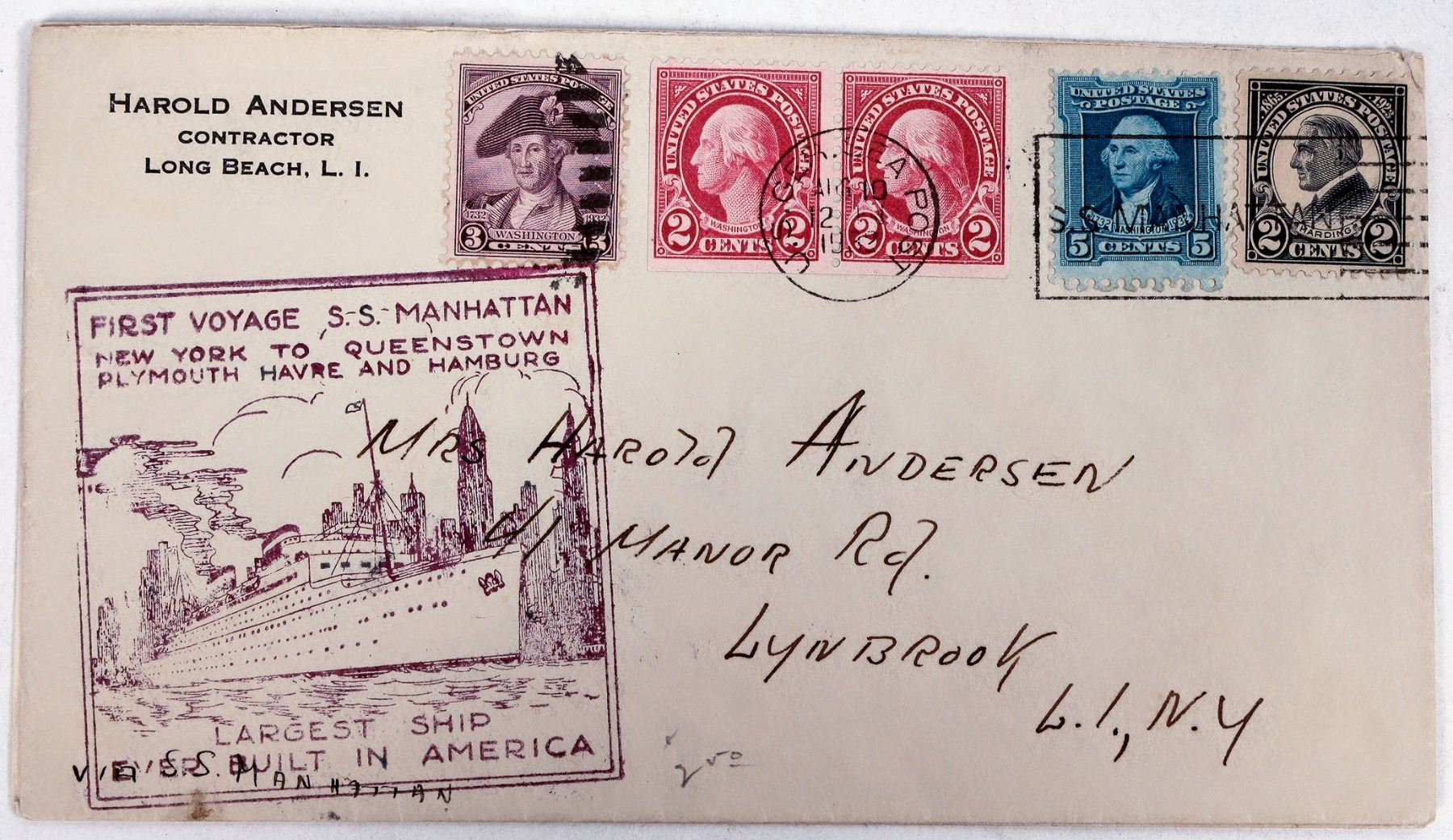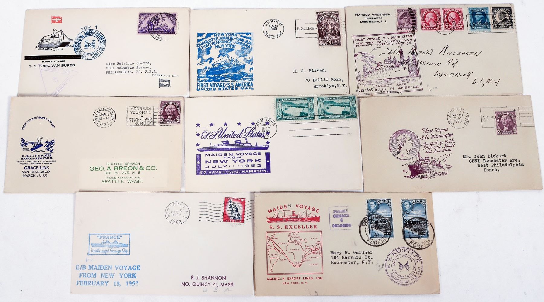 9 cacheted commercial liner 1st voyage covers, c. 1933-66. SS Washington, United States, Santa Lucia, Pres. Cleveland, America, France etc.