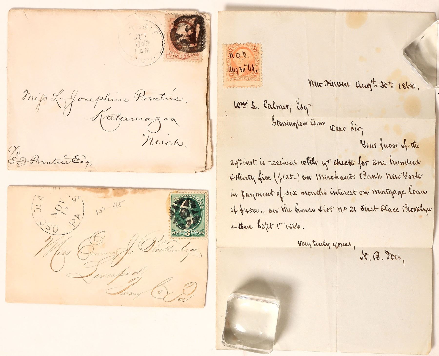 3 unusual US covers. 3c hollow star cancel Osceola Mills, PA. Unusual version of skull and crossbones cancel on 6c, Detroit. Misuse of 2c revenue as postage on lower left.