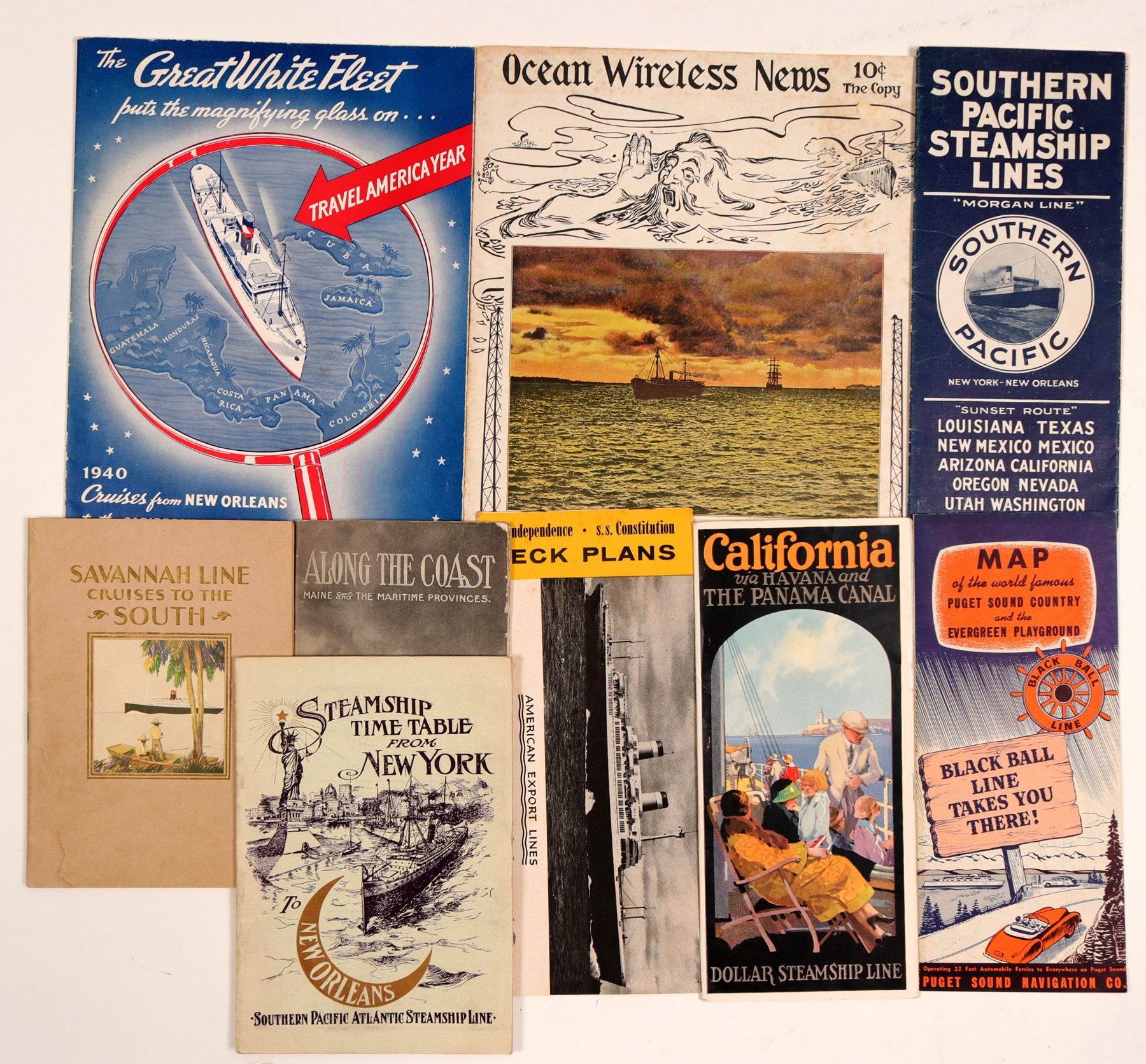 Southern Pacific Steamship Lines, Black Ball Lines Puget Sound map, Dollar Steamship Line, California. American Export Lines deck plans, Eastern Steamship-Maine Coast, Southern Pacific Atlantic Steamship Line NY timetable, Savannah Line Cruises to the South, Great White Fleet New Orleans 1940, Ocean Wireless News 1916?