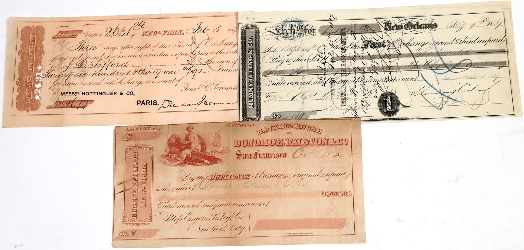 3 US Exchanges, 1862-72. New York, New Orleans, San Francisco.
