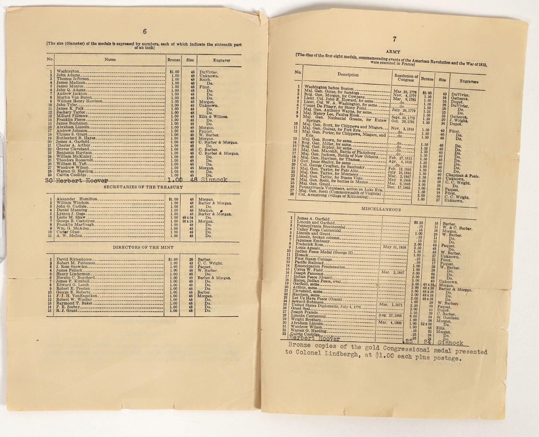 1895 Index of the Coins and Medals of The Cabinet of the Mint of the United States at Philadelphia. 45 pages, 5 x 7 inches. Two copies of the 1951 Domestic Coin Manufactured by Mints of the United States. 35 pages; 6 x 9 inches. One with front cover foxing, corner issue, the other has light front stains. 1927 Information Relating to US Coins and Medals; 8 pages crease and small tears. 1964 Treasury Dept. typewritten facts about the history of the money of the United States, 13 pages.