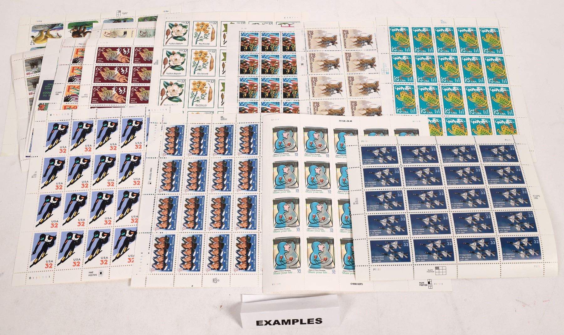 Lots of mint US sheets including souvenir sheets and older commemoratives. Face value about $1300.