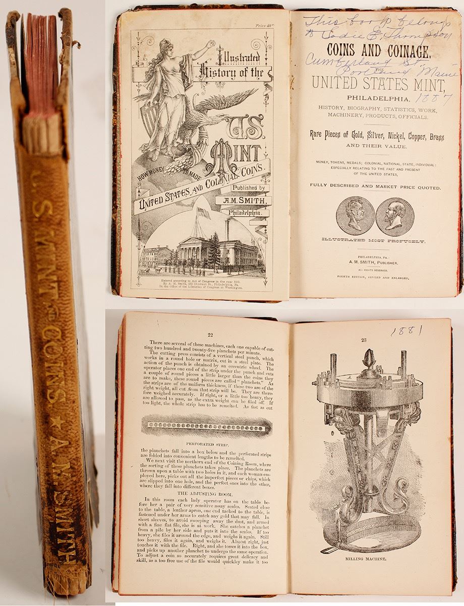 Fourth Edion hard cover. Coins and coinage of the United States Mint. 120pp. Covers are detaching and have wear. Sold as is! Date: 1887? Location: HWAC# 69076