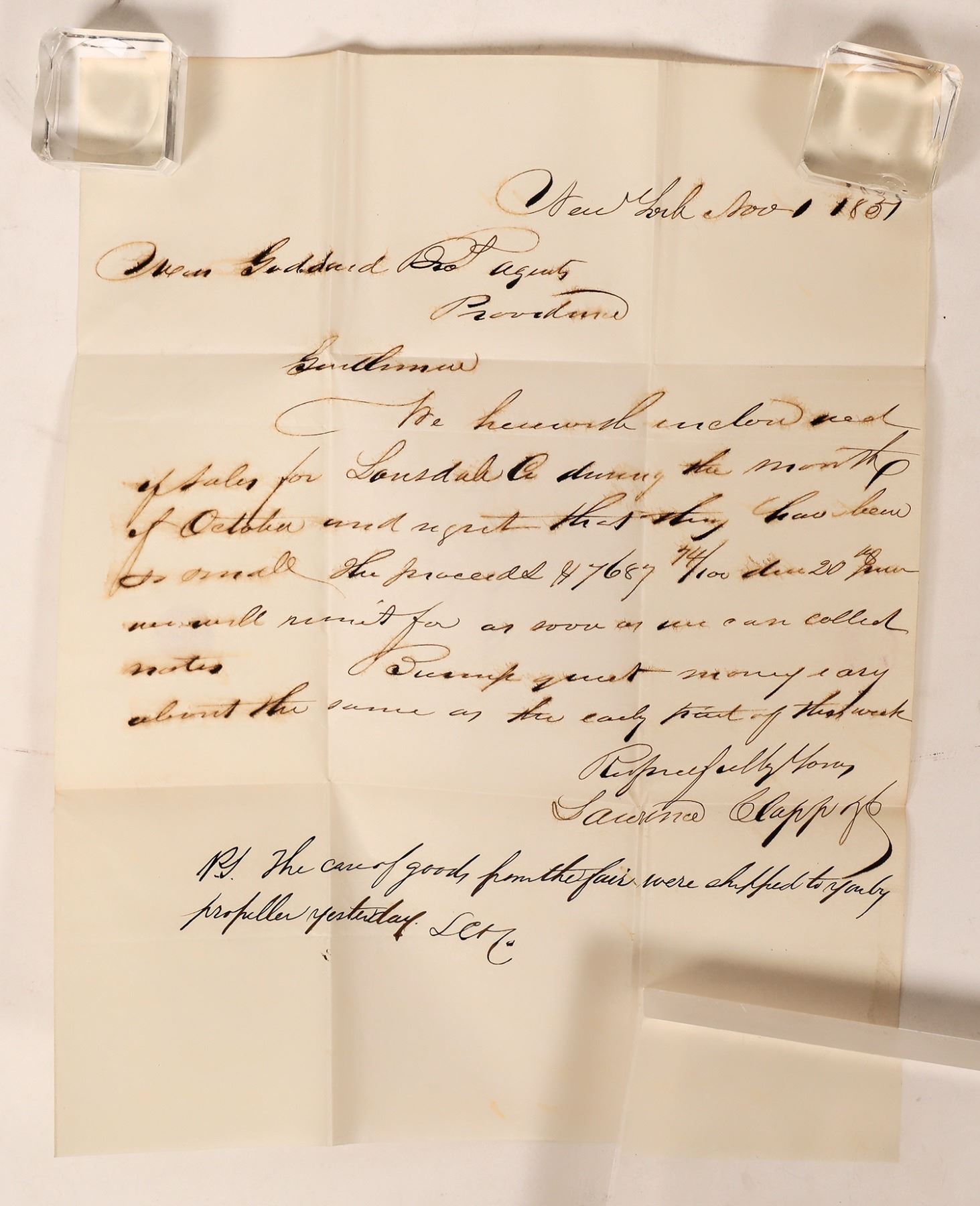 21. INVOICING: Invoices are mailed or emailed within two business days after the close of all portions of the sale. Within 15 calendar days of receipt of invoice, payment is due in full to Holabird Western Americana Collections, 3555 Airway Dr., #308, Reno, NV 89511. Late fees may be added if payment arrangements are not made within those 15 days. Sales tax will be added to all sales picked-up after the auction or shipped to Nevada addresses, according to Nevada State law, unless a resale certificate is provided.
