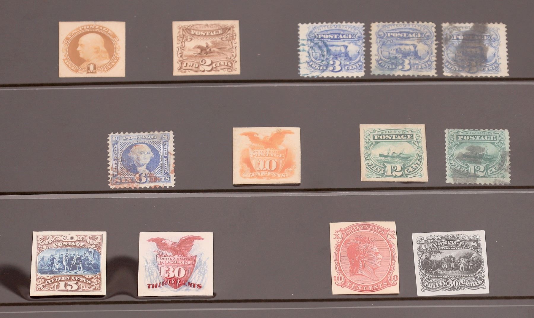 US Regular Issue Series 1869-1880 Die Proofs (6) A34, A35, A38, A39, A40, A42, Essay (10c, but not from this series))(30c) and Regular Issues (5) A36 (3), A37, A39 (cancelled). State: City: Date: Provenance: