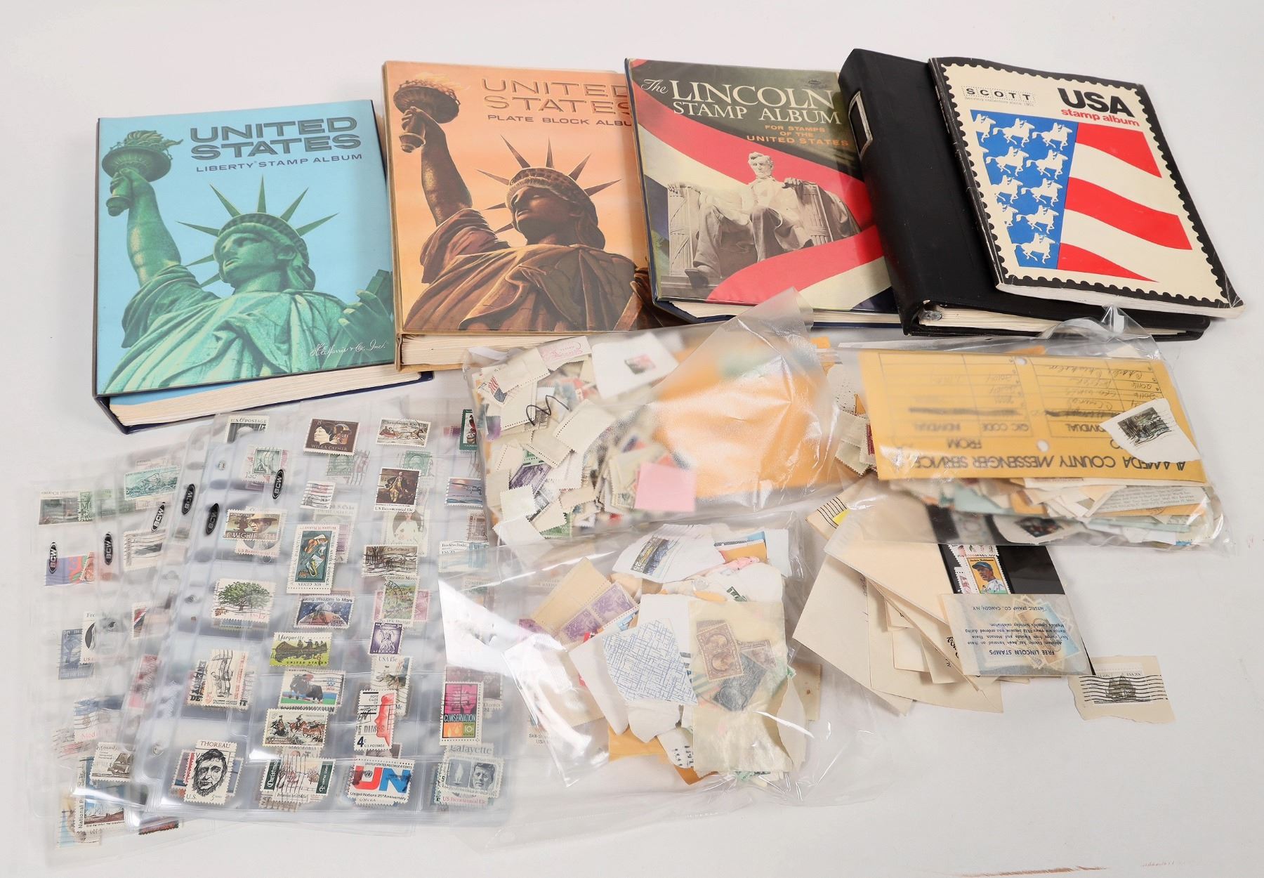 A hoard of mostly used and some mint US Stamps. Some in albums, other loose. 1800's to modern. Unsorted, a wide range of issues. See photo.