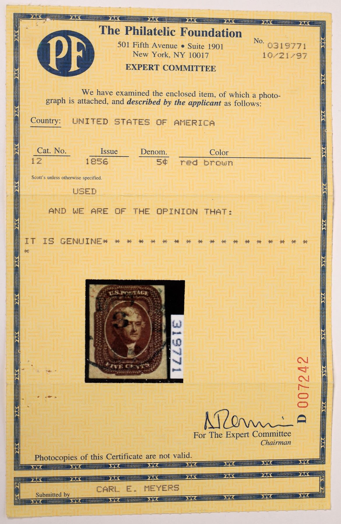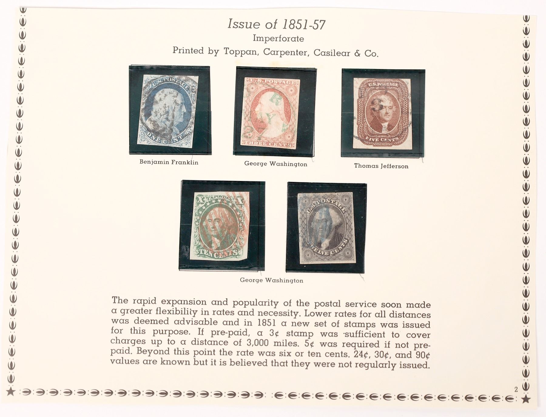 5 Series of 1851-57 imperforates. #7, 11, 12, 15 and 17. on half album page. 1c, 3c, 5c, 10c, 12c. All identified by Bracken or his dealer. COA from The Philatelic Foundation for #12. Please inspect.