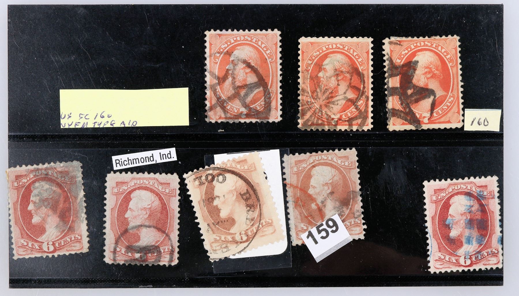 3x A47 7c with interesting cancels. 5x A48 6c with blue, red and other cancels.