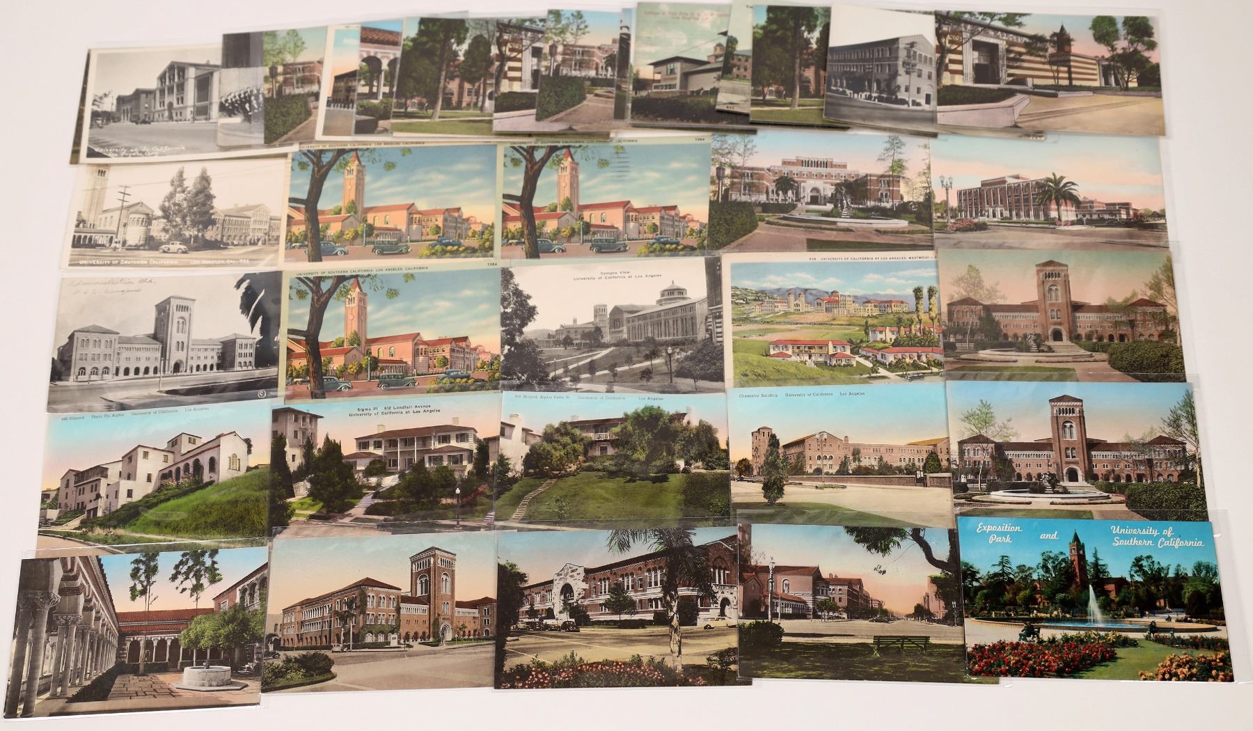 The University of Southern through the years in postcards. Lot of about 35 vintage cards, only a few postmarked (1920s-1930s).