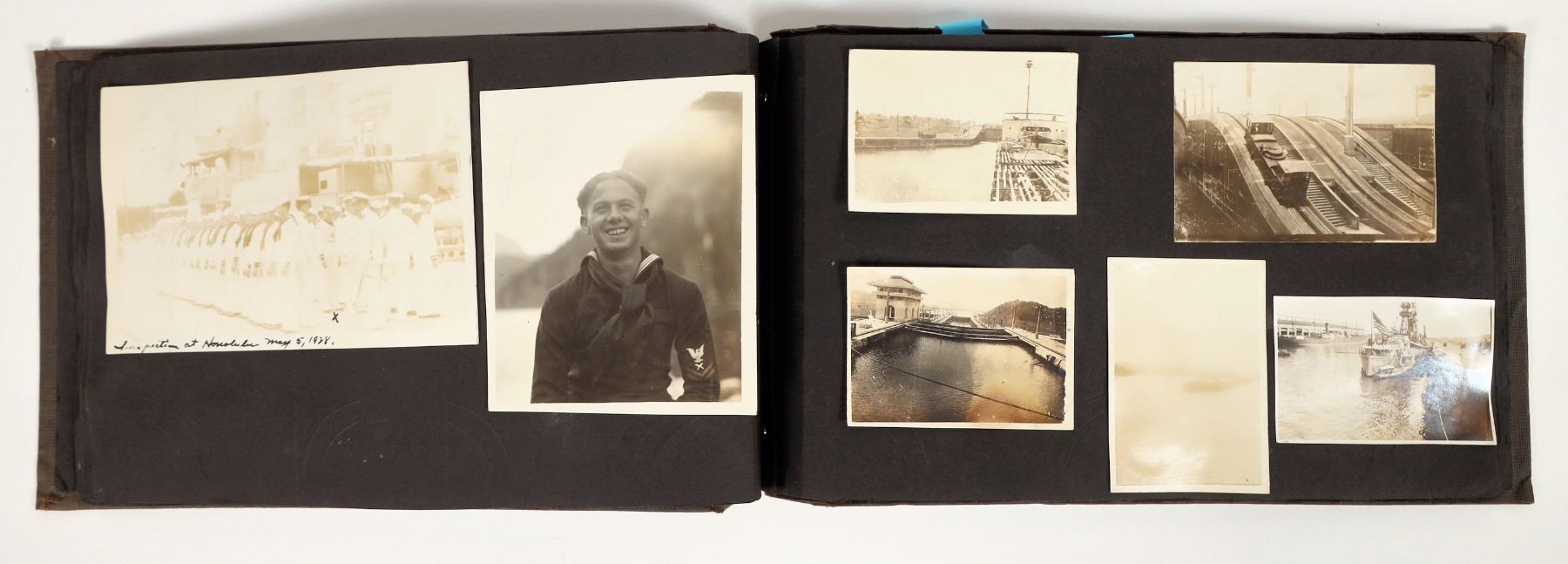 Fotolog U.S.S. Cuyama. Contains 95 photos. Includes: shipwrecked boats taken by Bunnell Photo Shop, San Diego; photos at sea; photos of sailors; going through the Panama Canal; shark and turtles captured at sea; military blimp; and more. Photos range from 5 x 7" to 4 x 5" to 2.5 x 3.25". Album is 7 x 11.5" Cuyama began her war service by carrying cargo between Pearl Harbor and San Pedro, Calif., from 27 December 1941 to 1 March 1942. Between 15 March and 29 June, she delivered fuel in two voyages to Efate, Noumea, the Tonga and Samoan Islands. She cleared San Pedro once more 25 July loaded men, cargo, and equipment at Seattle, Washington, and arrived at Kodiak, Alaska, 11 August. She operated in Alaskan waters fueling ships and occasionally voyaging to Seattle for replenishment and repairs.