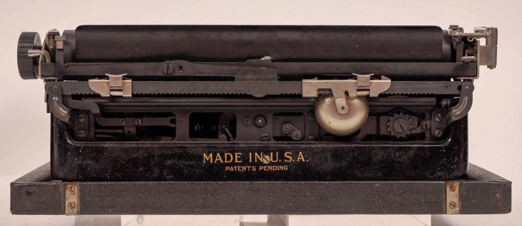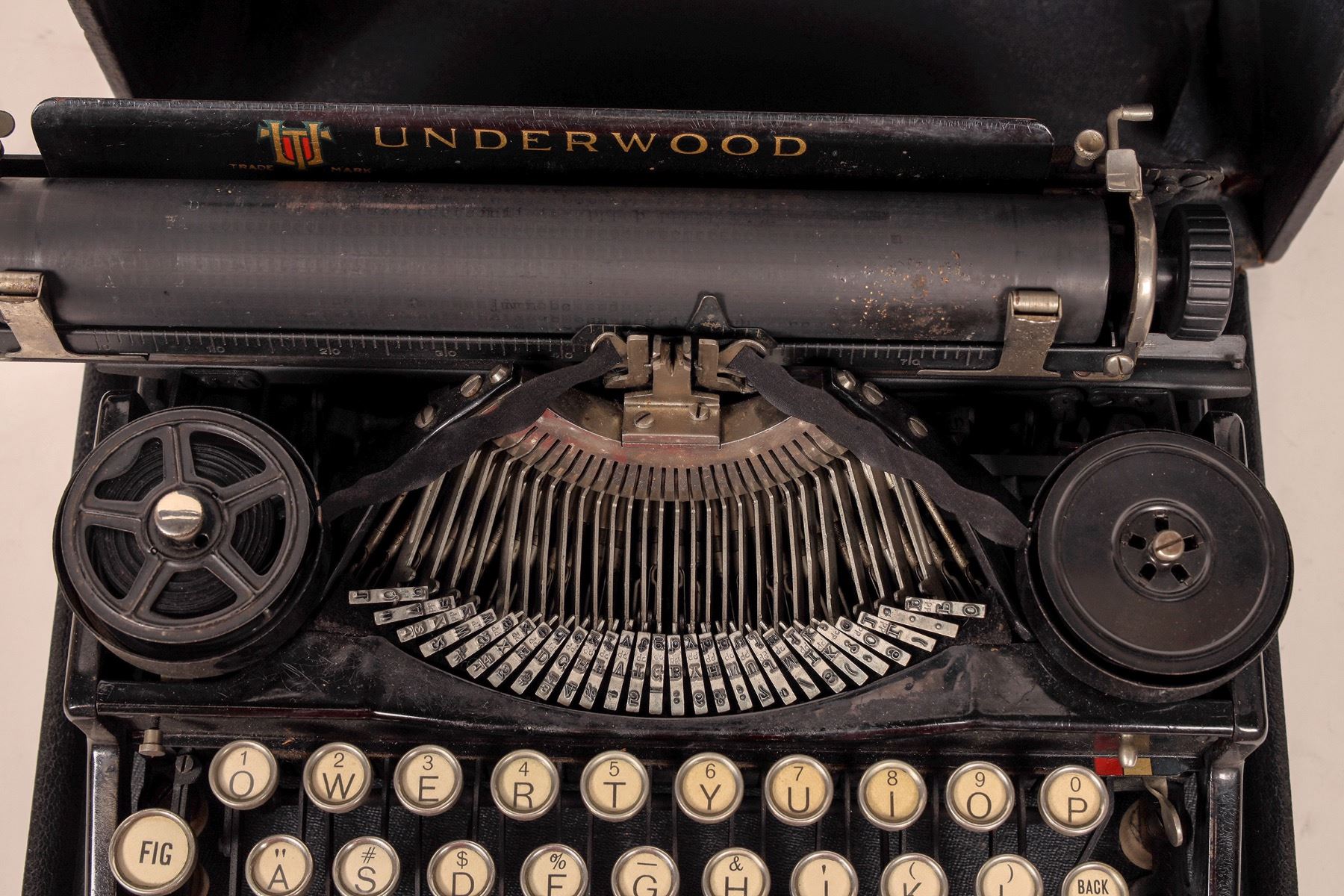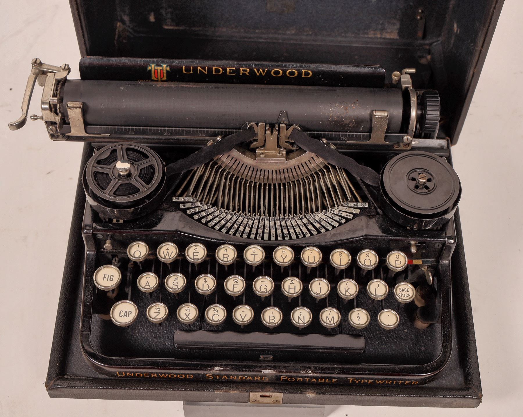Underwood Standard Portable Typewriter in black carry case. In working condition, light oiling may be useful.