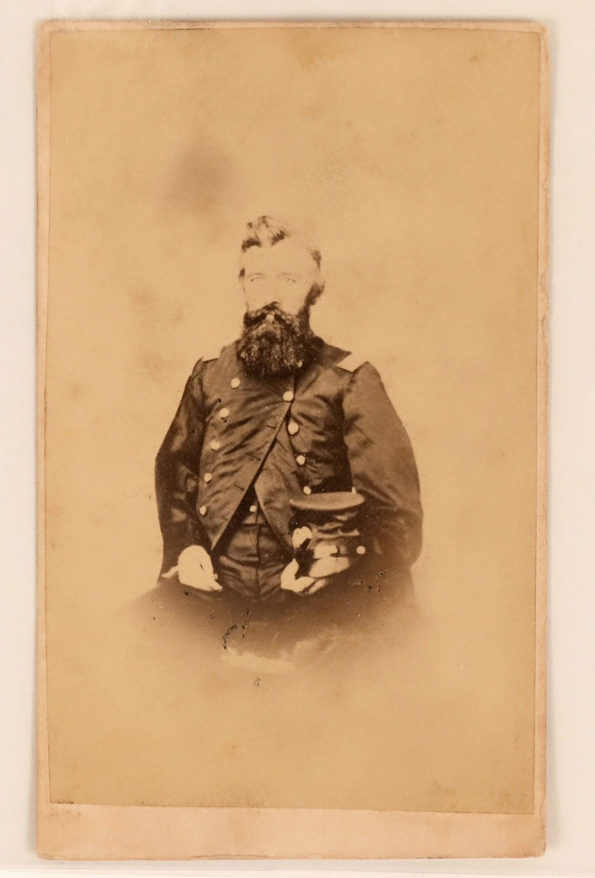 Nice CDV of a civil war soldier from the Union Army. From G.H. Willard's New Galleries, 1200 Chestnut St. Philadelphia. In full uniform holding his hat. VF.