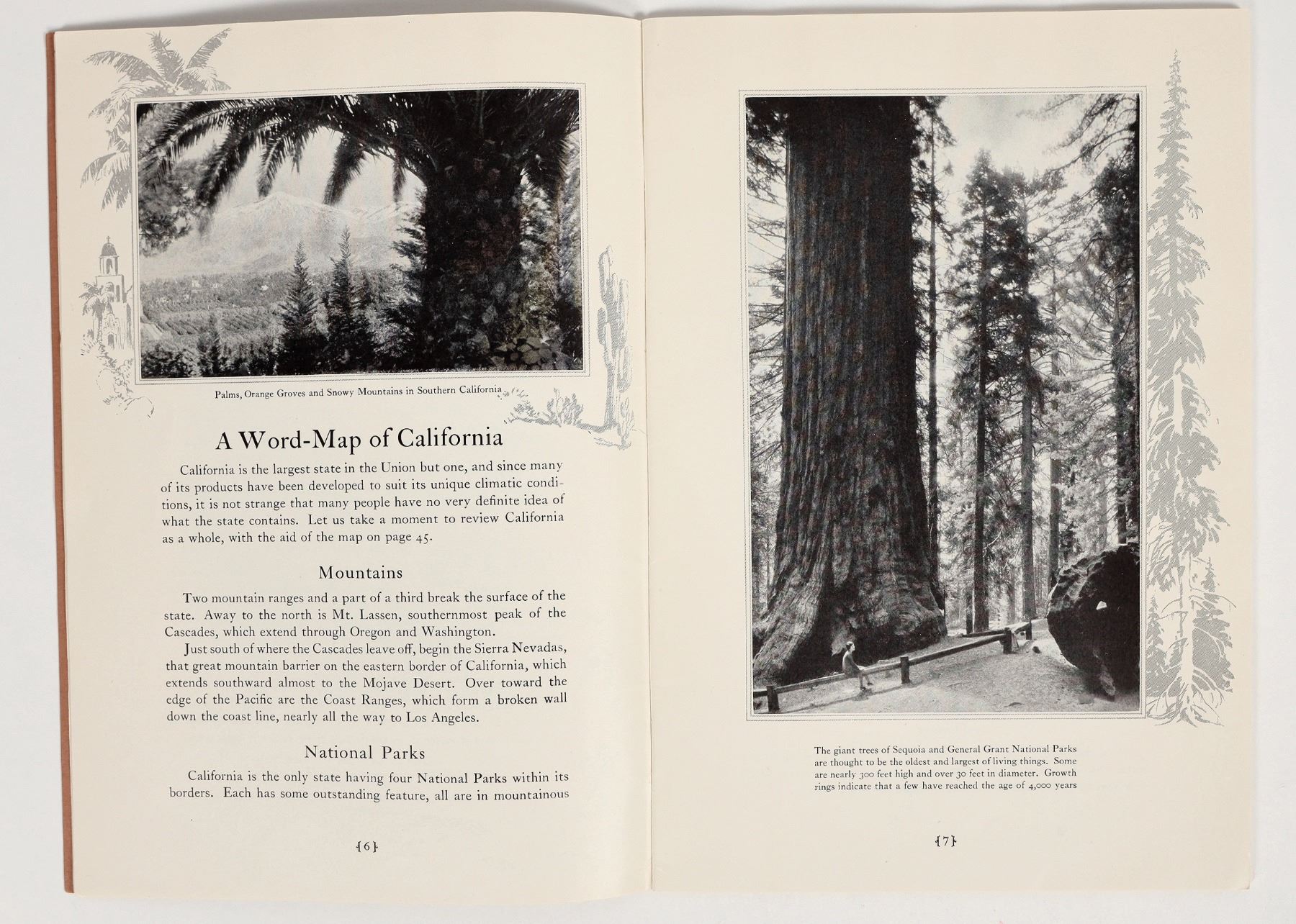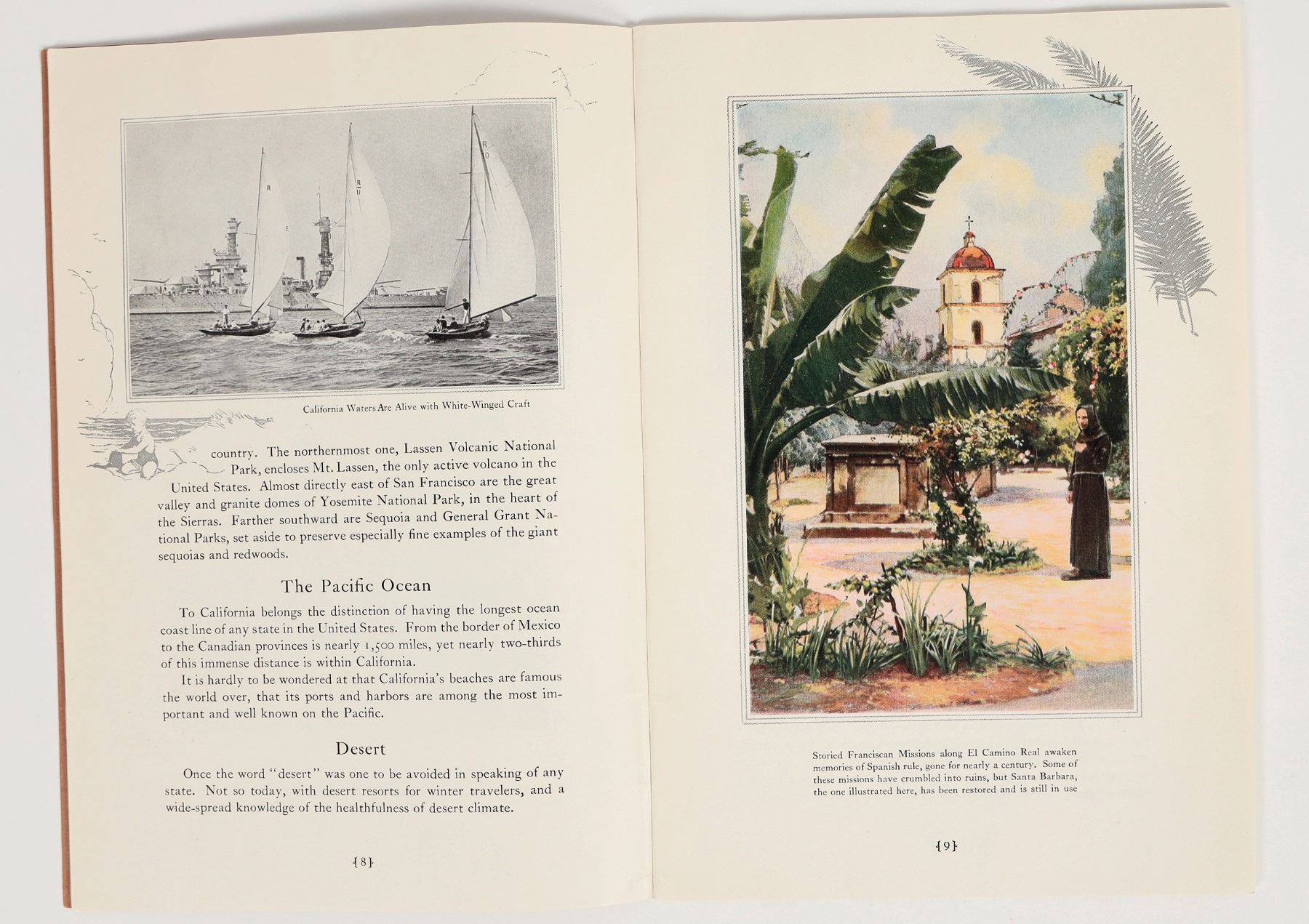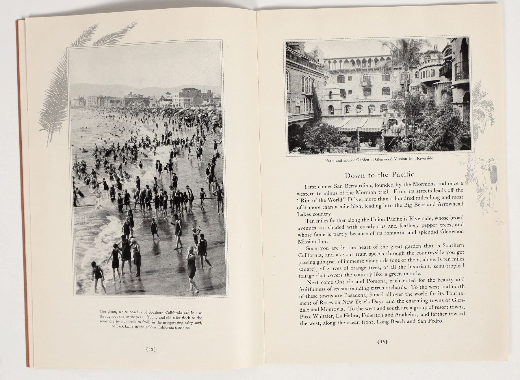 "California." 1930. CJ Collins, General Passenger Agent. 47pp. Black and white and color illustrations and photos. Southern California, San Francisco, Yosemite, etc. Nice maps! 10 x 7"