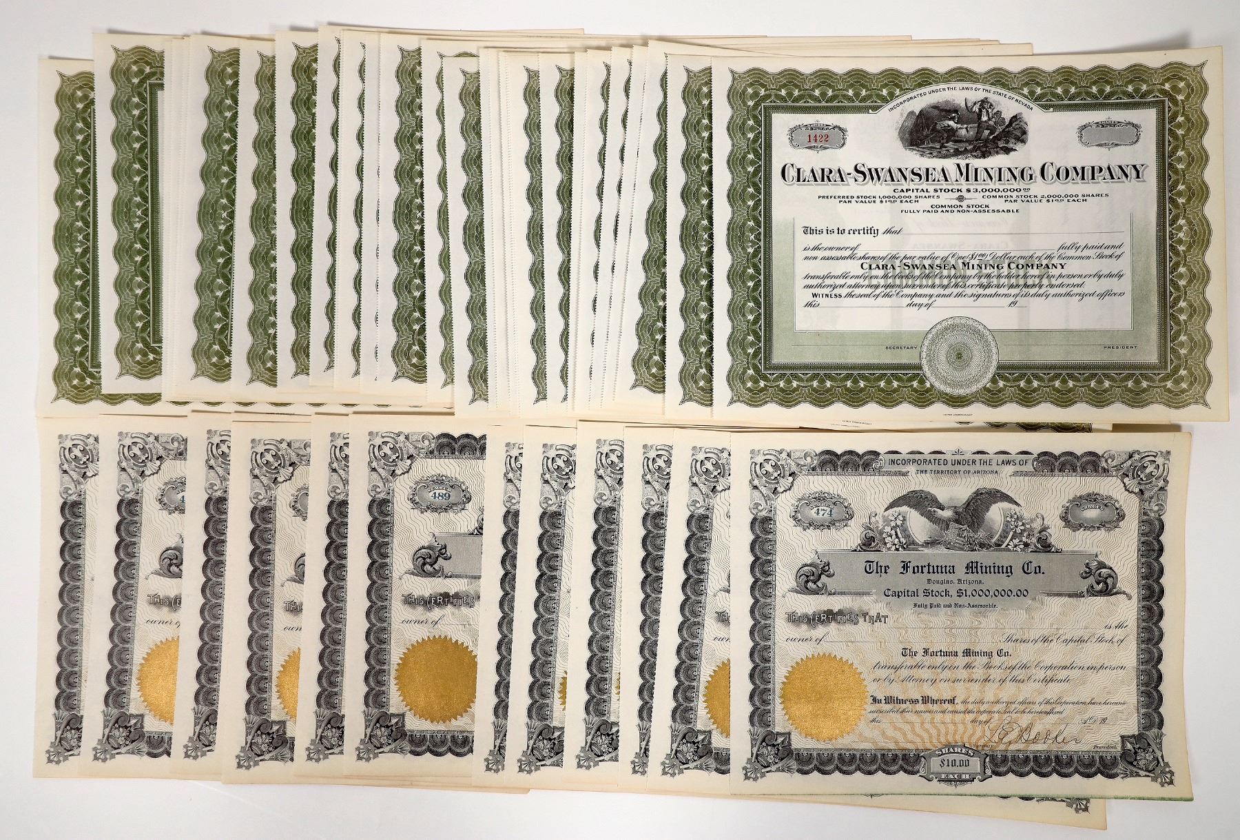 Unissued-26x Clara-Swansea Mining, 16 Fortuna Mining.