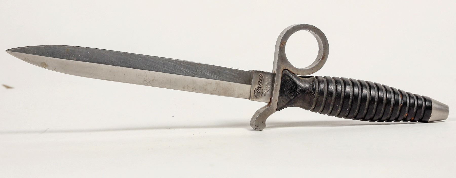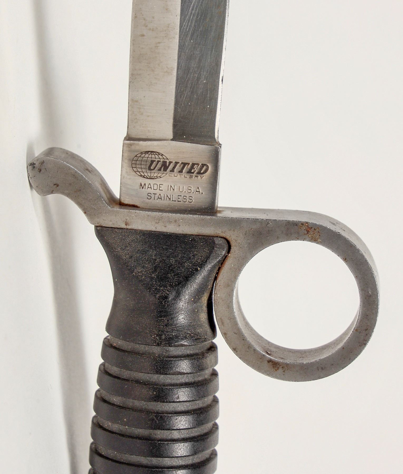 This is a United Knives Terminator 2 dagger; from the movie Terminator Judgement Day. The knife is 12.75 in. overall length, 7.5 in. dagger blade, 5.25 in. grip. with lightly worn. Please see photos for details.