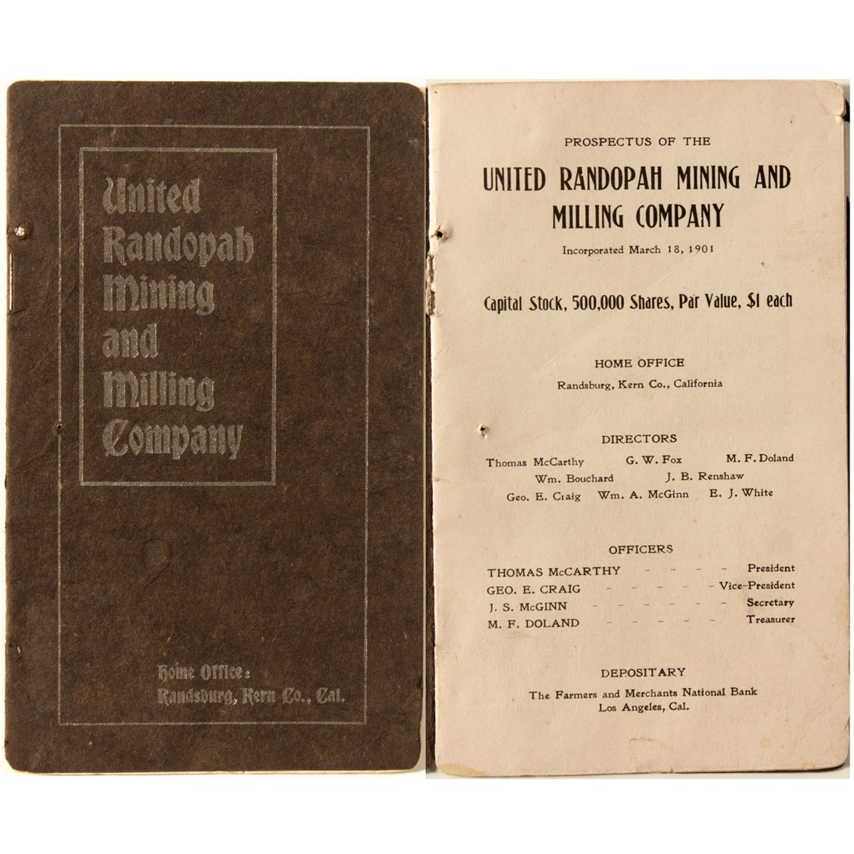 Can't miss investment where $100 will soon be turned into $10,,000! Includes map of mining claims in area. 8 pages. 5 _ x 3 _î. Home offices were in Randsburg. Date 1903 Tonopah, NV hwac 20468