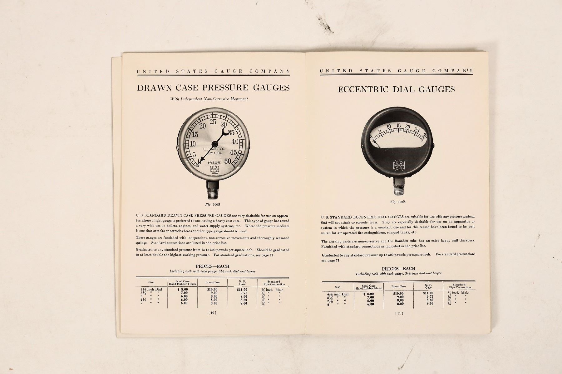 1924 United States Gauge Company catalog. 80pp with index and illustrations. From the files of Anaconda Copper. Altitude, thermometer, electrical, sprinkler etc. Spine and fly leaf attached but are separating from contents, please inspect.