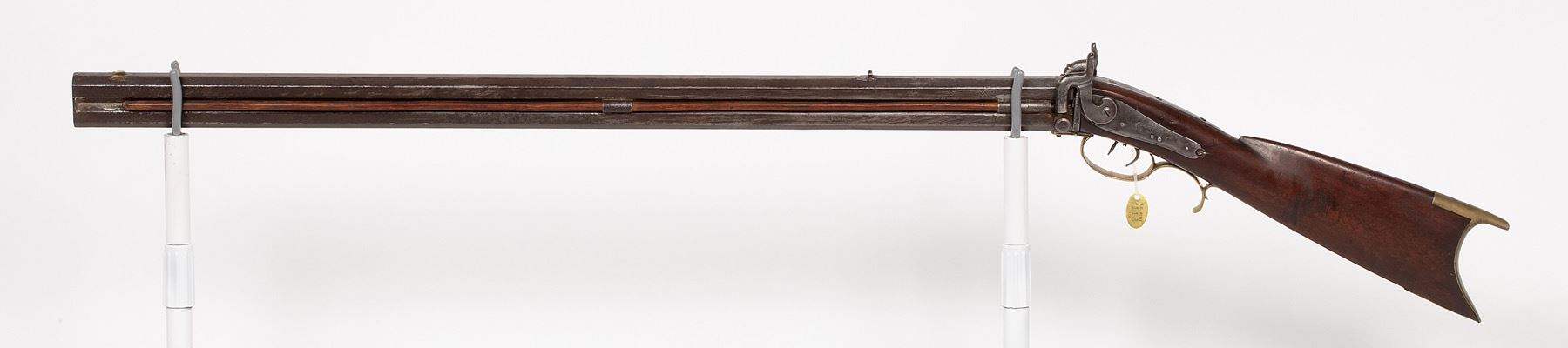 This is a back-action percussion over and under, chambered .45 cal./.45 cal. maker unknown. SN: N/A, JMD Oval Tag: 9118, Condition: Good, >
