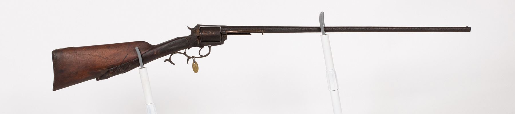 This is a revolving shotgun of an unknown maker. Experimental, at 20 ga. In poor condition extremely rare. SN: N/A, JMD Oval Tag: 9240, Condition: Poor, >
