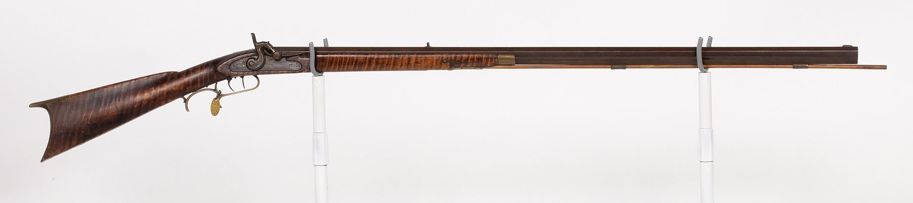 This is a beautiful half-stock Kentucky rifle from Ohio, maker unknown. 39 in. barrel. SN: N/A, JMD Oval Tag: 1958, >