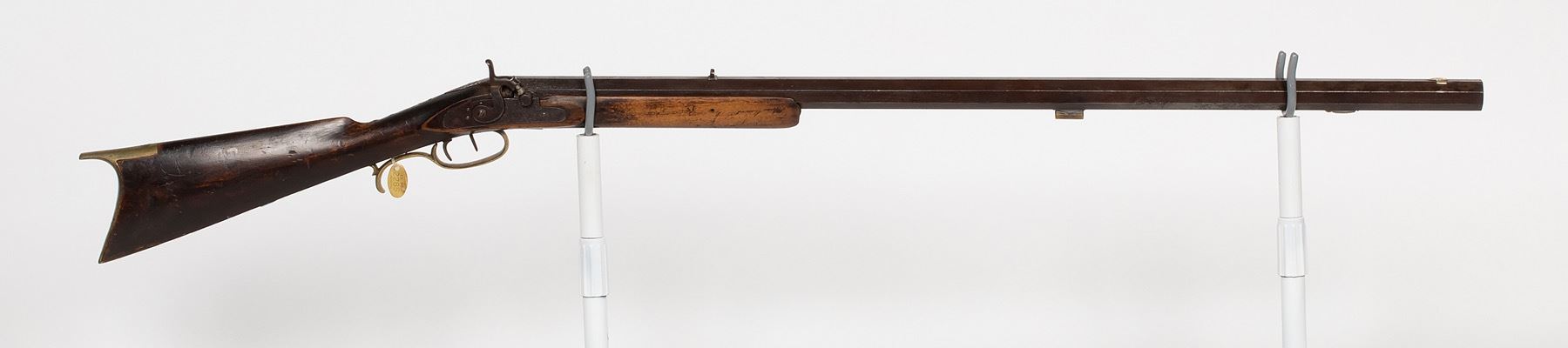 This is a J.H. Johnston rifle made in Pittsburgh, Ohio. It is currently in half-stock condition. SN: N/A, JMD Oval Tag: 2265, Condition: Fair, >