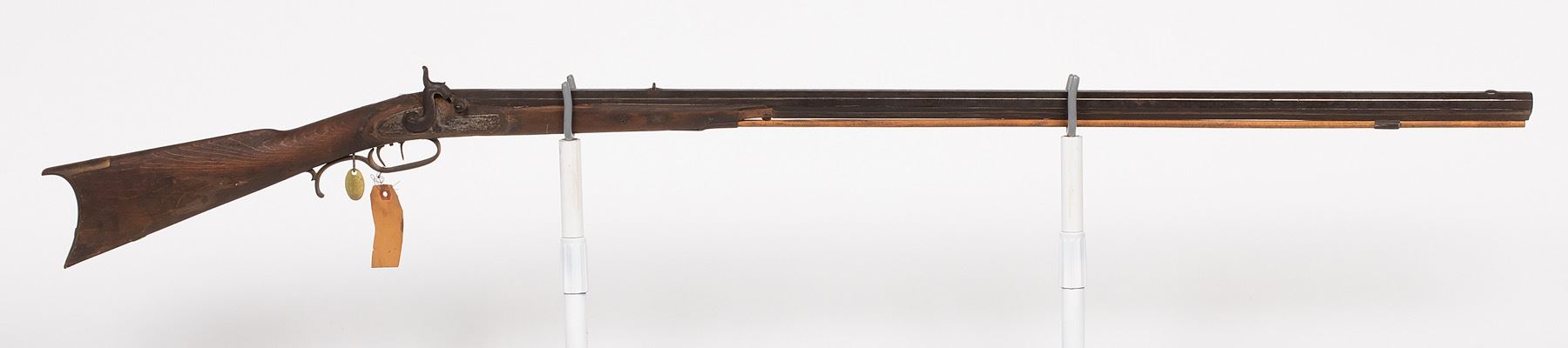 A Kentucky half-stock rifle with double set triggers fair condition. James Rown of Pittsburg lock. SN: N/A, JMD Oval Tag: 9328, Condition: Fair, >