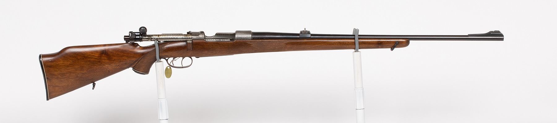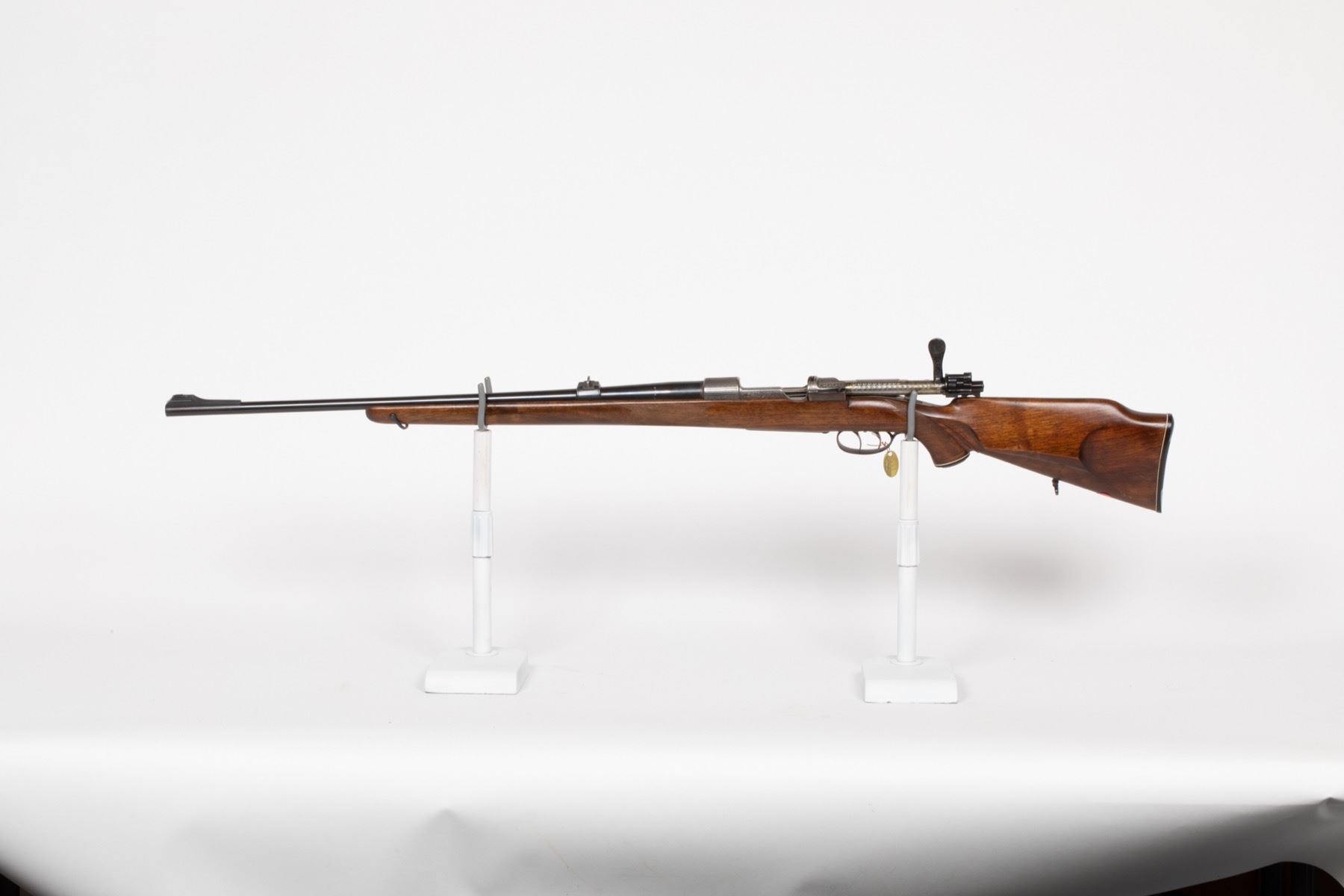 Mauser, Mauser 98, Sporterized Mauser, blade front, notch rear sight, sights, Butterknifed (polished) Bolt, Double Set Trigger, engraving on breach area, checkered pistol grip, cheek rest stock, rubber butt plates. SN: 5240-2, JMD Oval Tag: 8302, Condition: Very Good, >> FFL IS REQUIRED <<