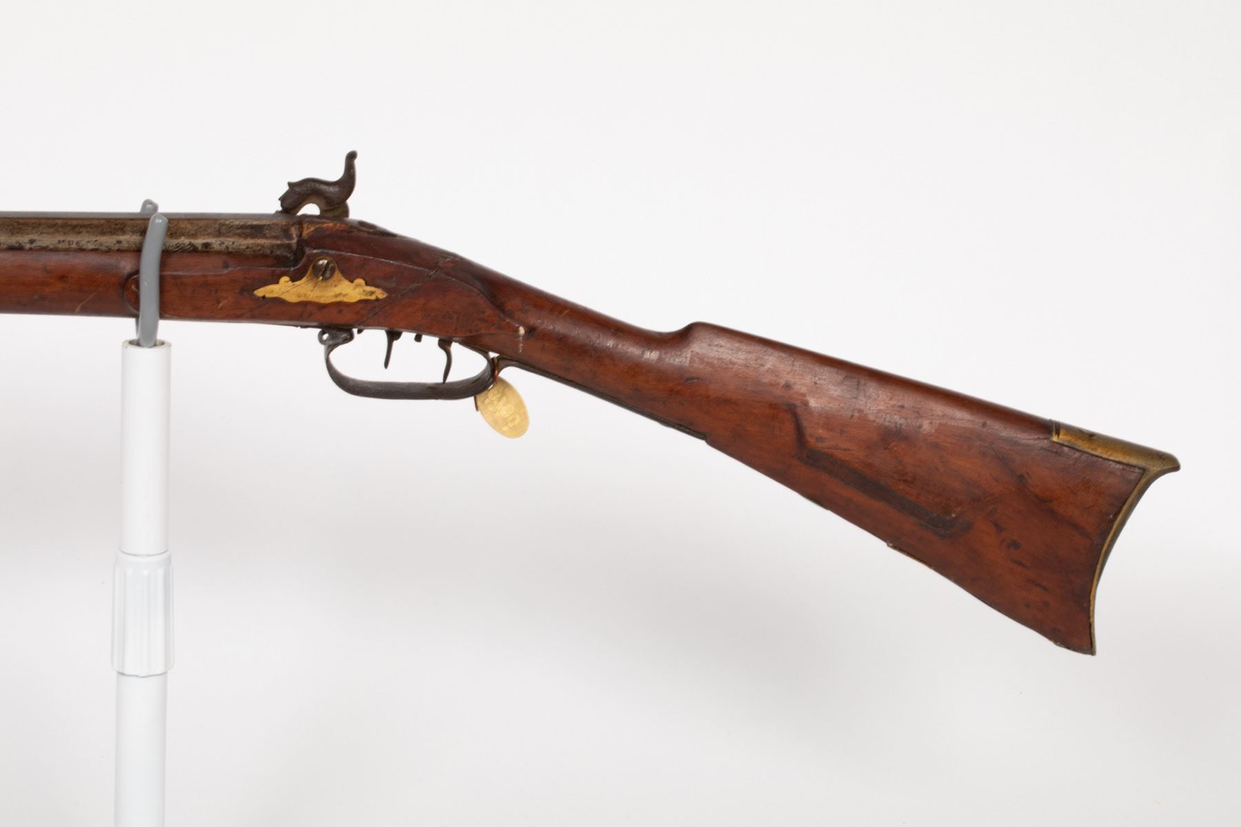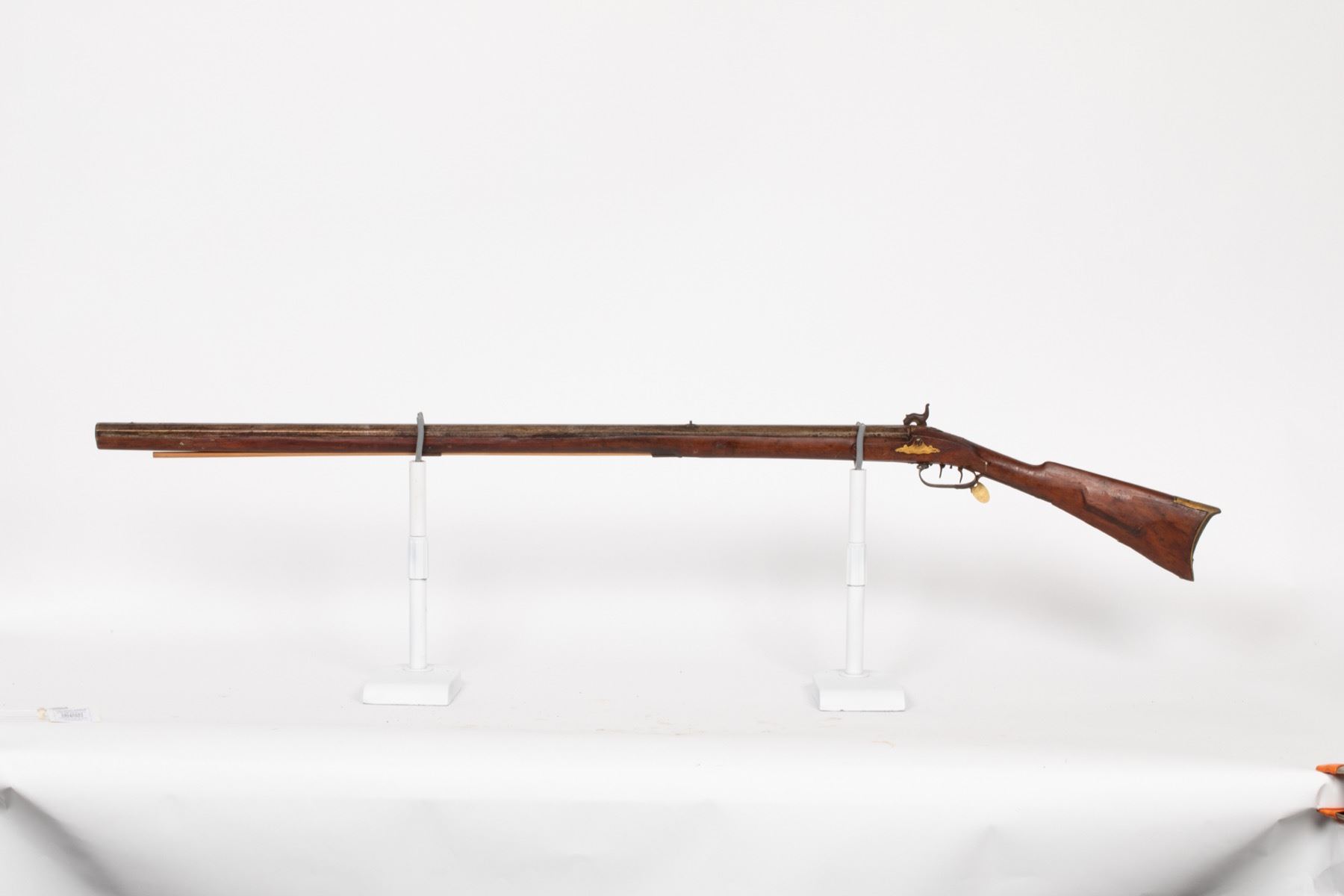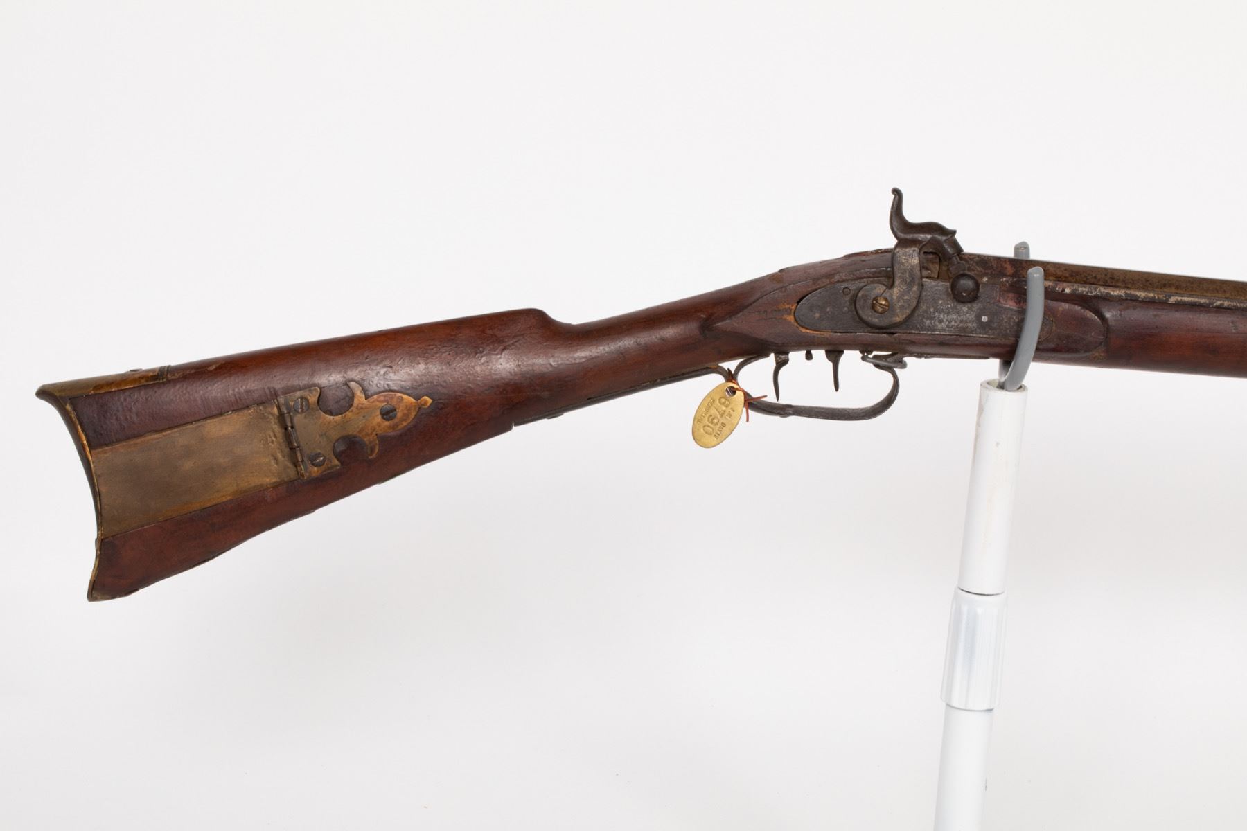 This is a percussion full-stock rifle in about .50 cal. SN: N/A, JMD Oval Tag: 6790, Condition: Fair, >