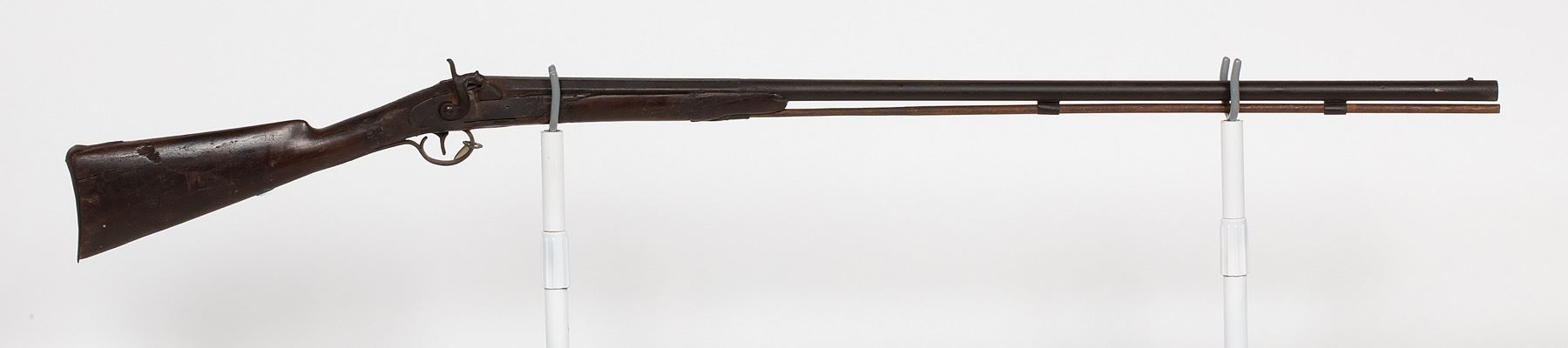 This is a percussion fowler in 12 ga/ half-stock. SN: N/A, JMD Oval Tag: 6738, Condition: Poor, >