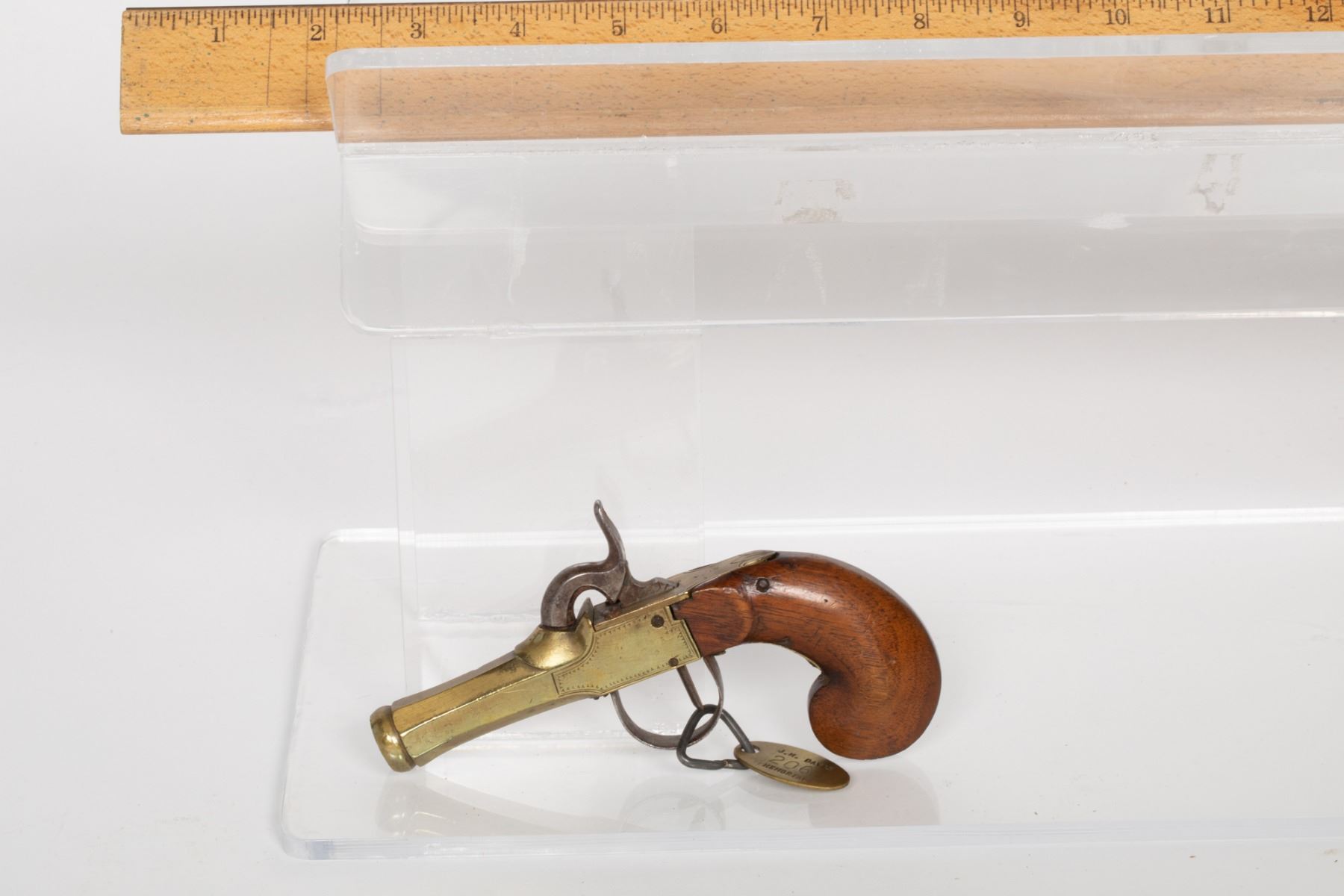 Pistol, Derringer Percussion Pistol, wood grips, SN: N/A, JMD Oval Tag: 206, Condition: Fair, >