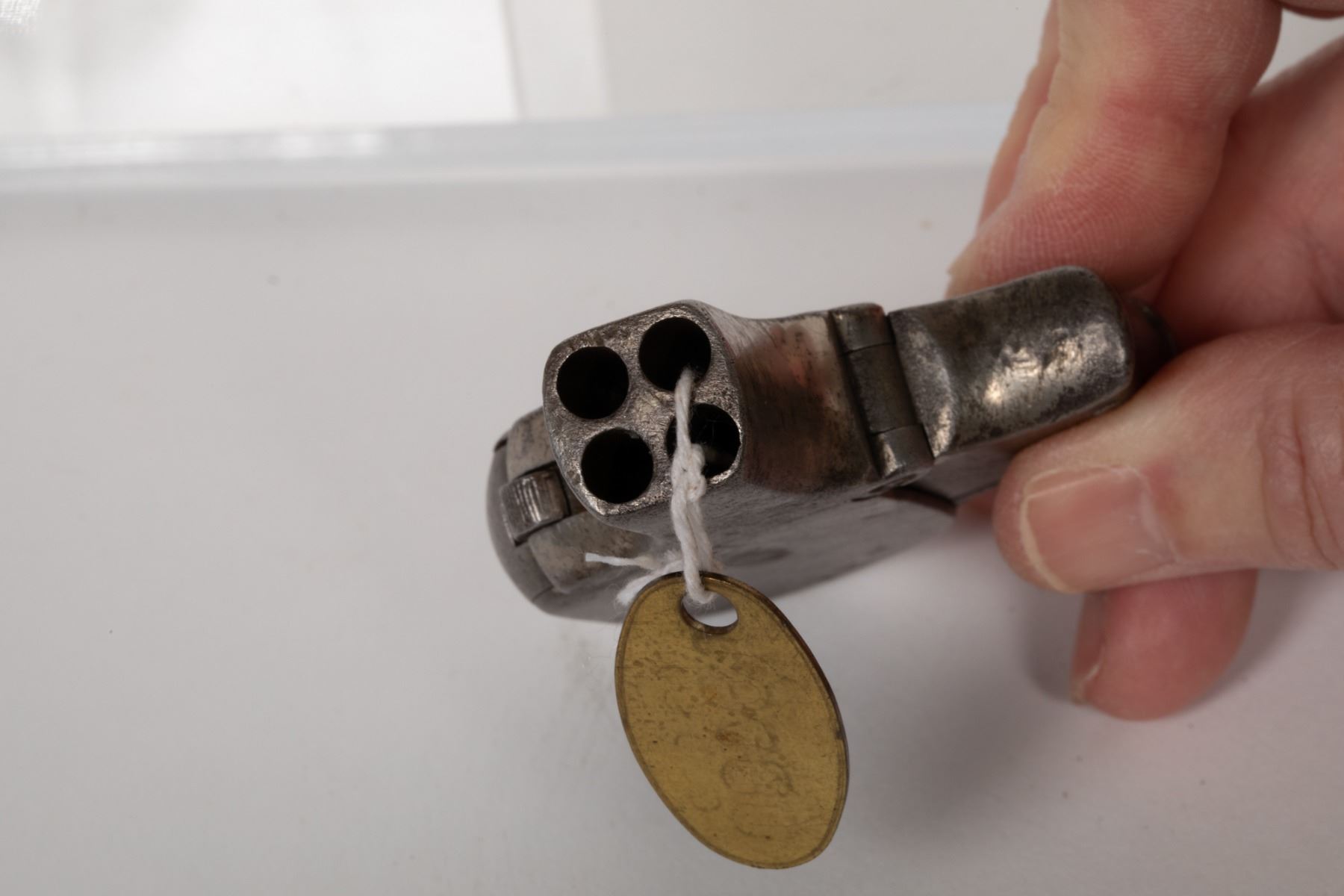 Pistol, Unknown, .22, Four shot, Palm Gun. SN: N/A, JMD Oval Tag: 10488, Condition: Good, >