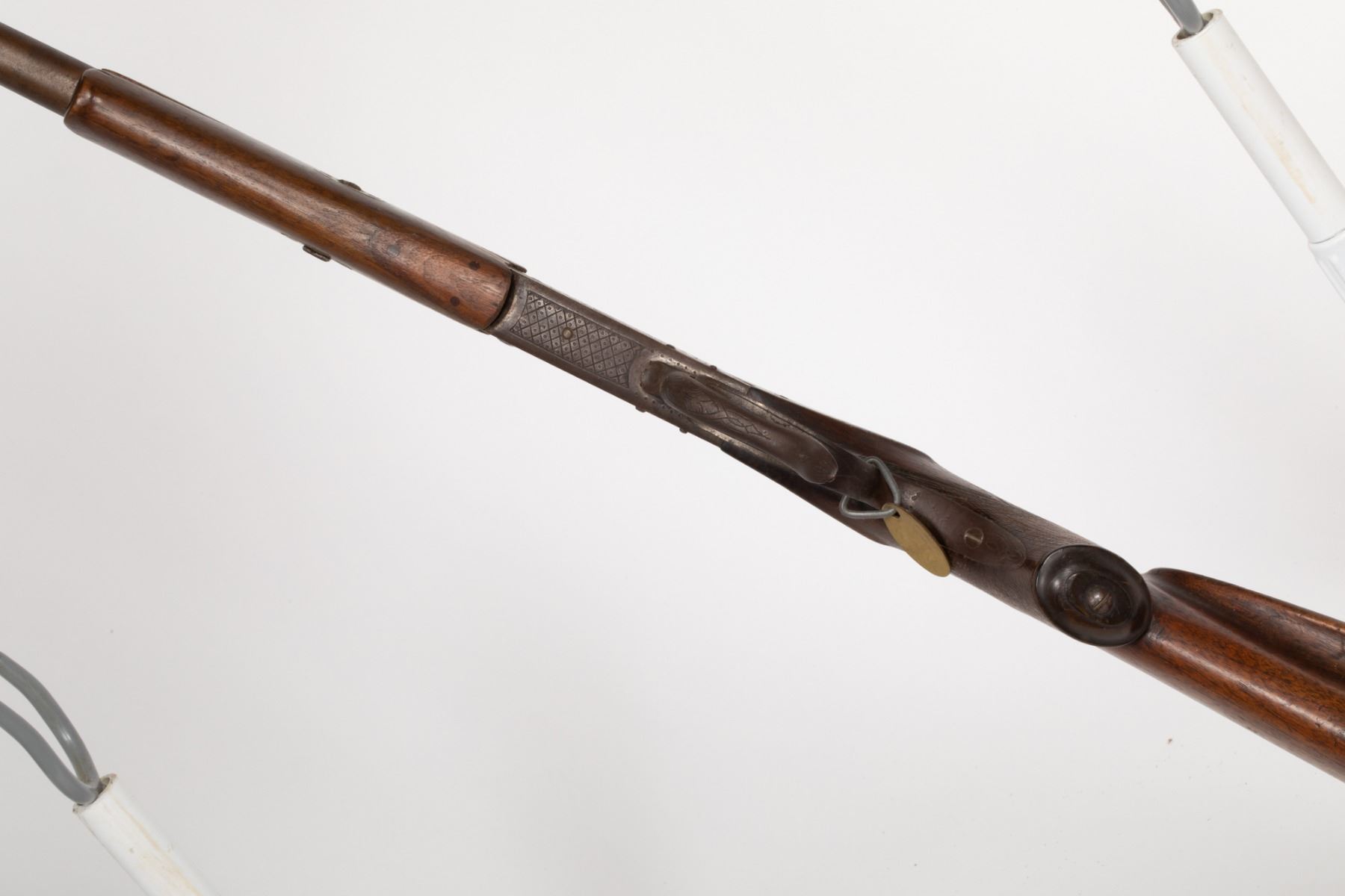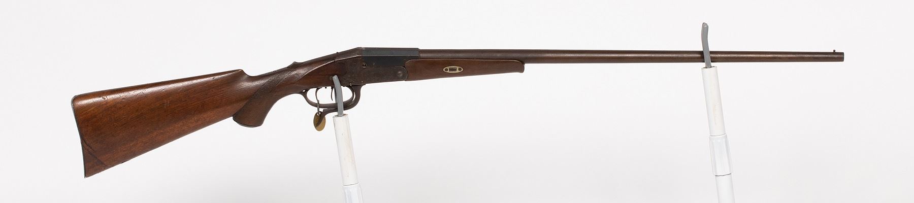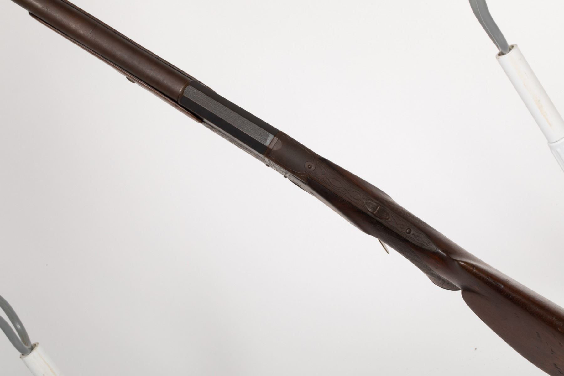 Unknown manufacturer, single barrel, dual trigger, checkered pistol grip, cheek rest, wild life scene engraved, metal butt plate, SN: N/A, JMD Oval Tag: 6204, Condition: Good, >