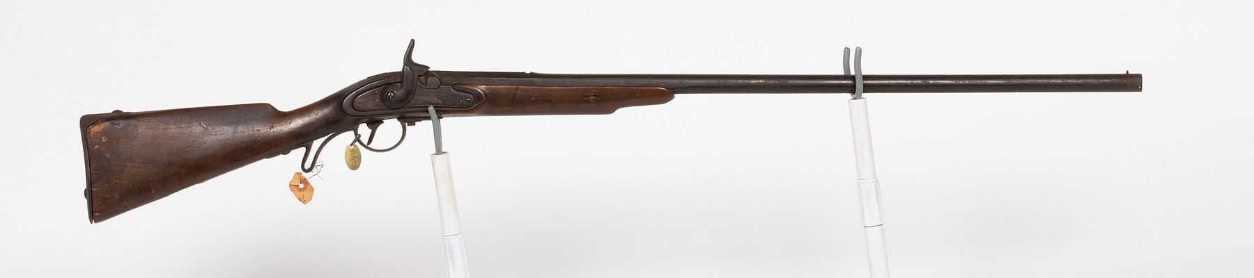 Unknown manufacturer, 16-gauge Single Barrel Shotgun, hammer, smooth fore/pistol grip, metal butt plate. SN: 48, JMD Oval Tag: 7496, Condition: Fair, >