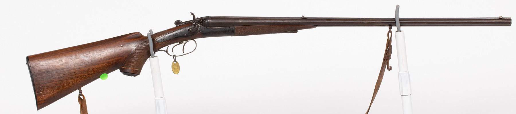 This is a combination rifle/shotgun, maker unknown, SxS combo in 16 ga./ 7 mm. SN: 11610, JMD Oval Tag: 7158, Condition: Good, >