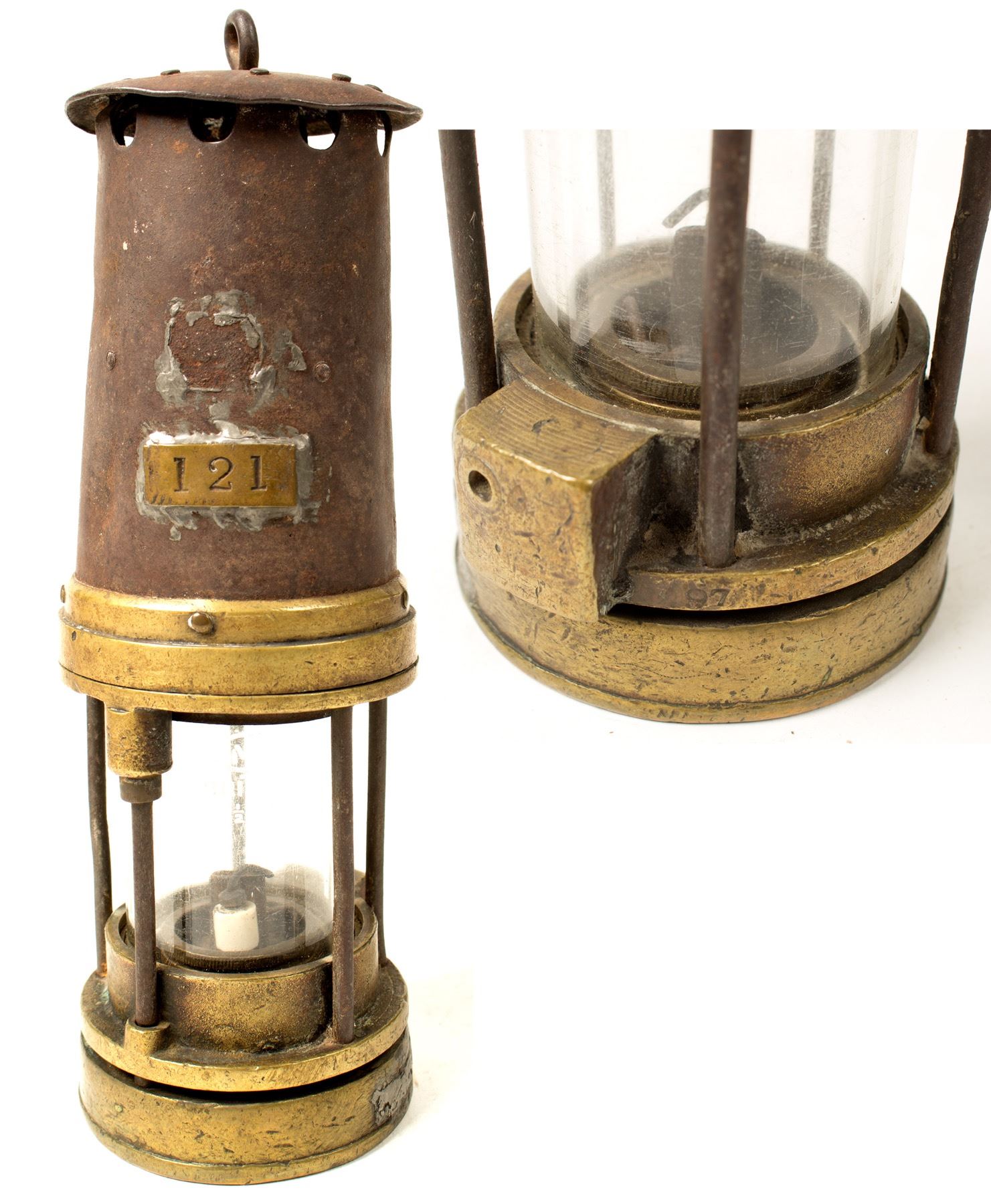This safety lamp at one time appears to of had a brass tag which has been removed. There are no other markings. The lamp is in the same style as the Patterson and Company and the Thomas and Williams. Riveted tapered and vanity top. 9.75 inches tall, 3.25 inch base. State: City: HWAC#: 47132 Date: