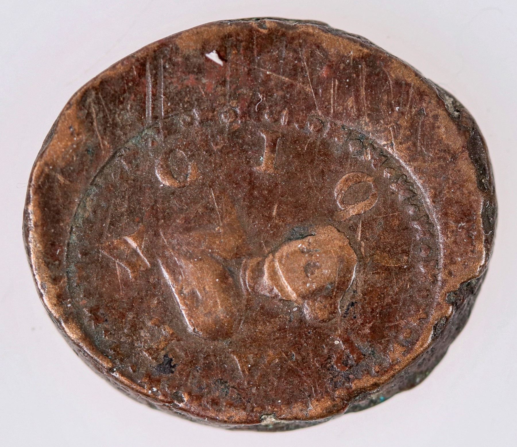 Unusual single side die struck bronze medallion "Ciopala" with a woman's head. Off center, 26 x 23mm. Perhaps well pre-1800.
