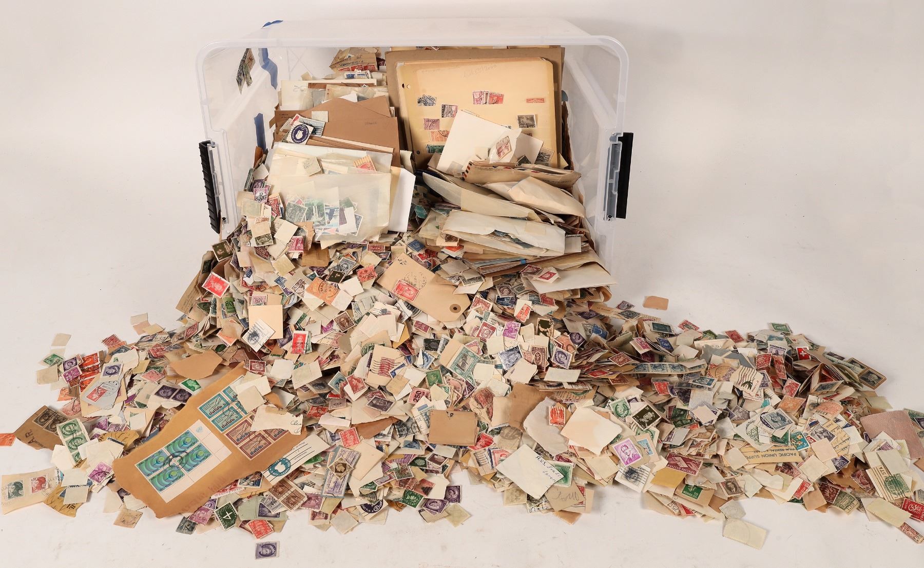 Hoard of mostly foreign used stamps, c. 1900+. From all over the world, some still on envelope corners. This lot is unpicked by us and it is ready for you to sort through and discover the depth of this group. It weighs around 14 lbs, so there are thousands of stamps to go through!