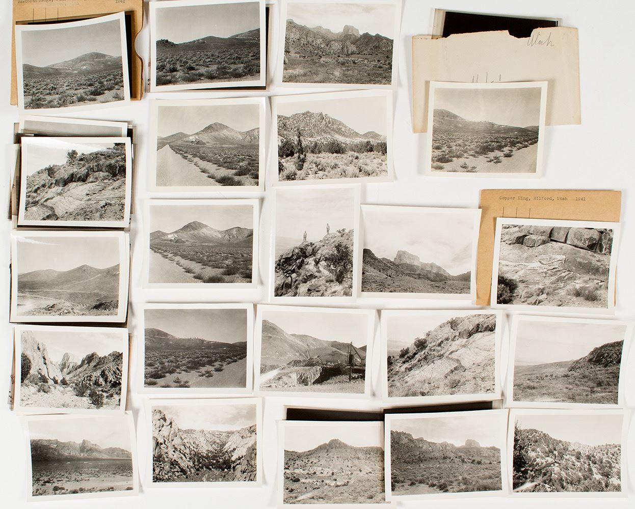 Group of about thirty original photographs from the Copper King Mine, the Sawtooth Range, and other locations. Photographs by Professor Paul Kerr of Columbia University, 1941. (See lot titled ‘Kern County Tungsten Mine Photographs’ (ID 37642) for a short note on Professor Kerr.) State: Utah City: HWAC#: 37650 Date: 1941