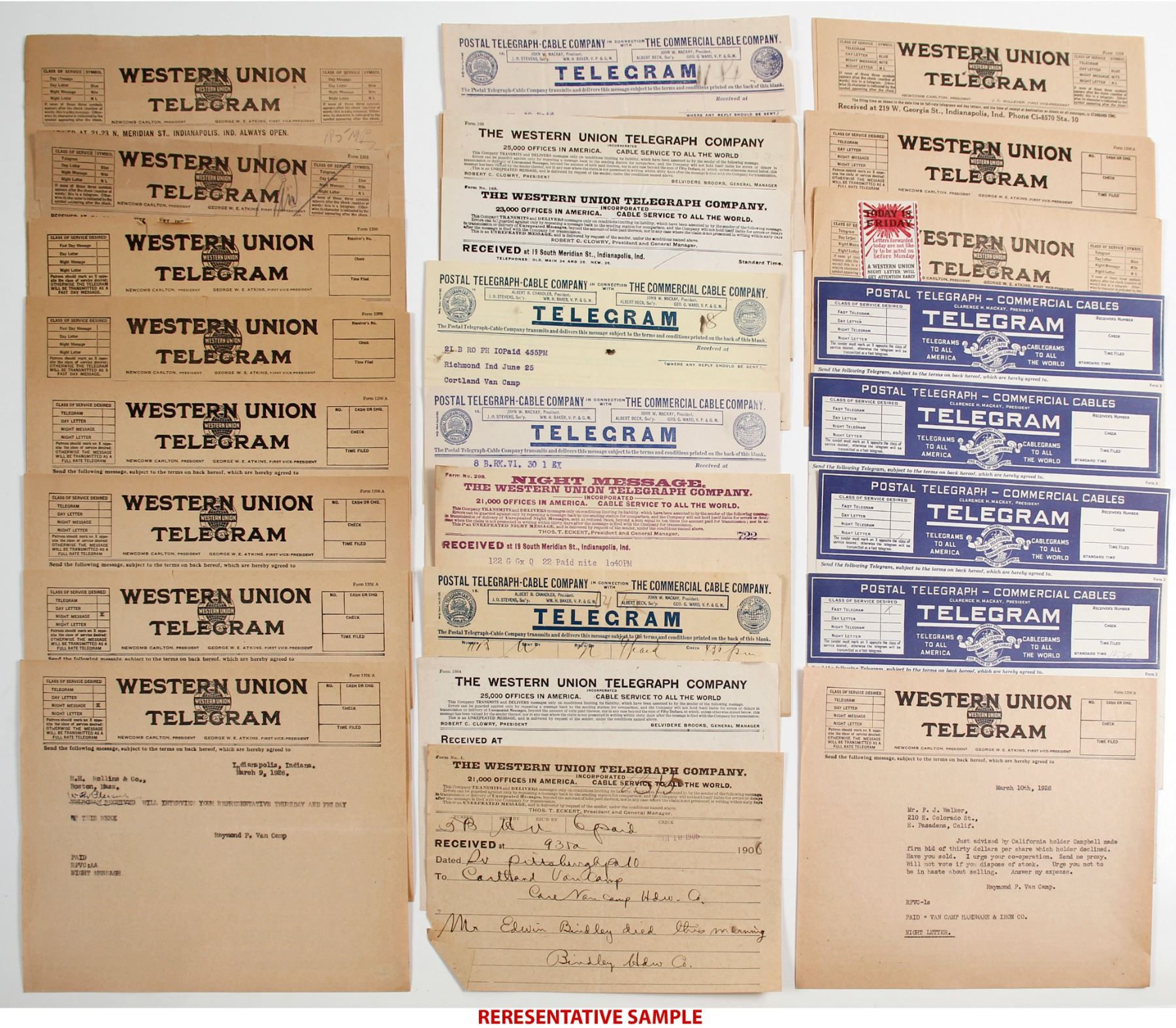 Approx 140 van Kamp Hardware telegrams c. 1900-1926. Business related Western Union telegrams.