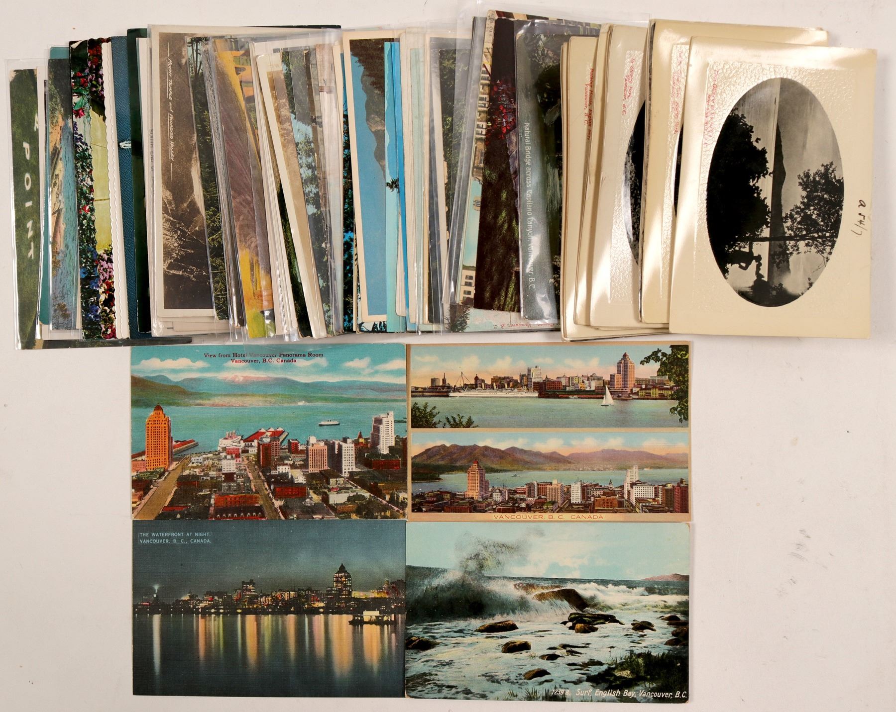 Approx. 50 postcards, RPC's & chromolitho's. Natural Bridge across Capilano Canyon, Vancouver, B.C.; Surf English Bay, Vancouver; In Stanley Park; The Court House - A Handsome Structure & more.