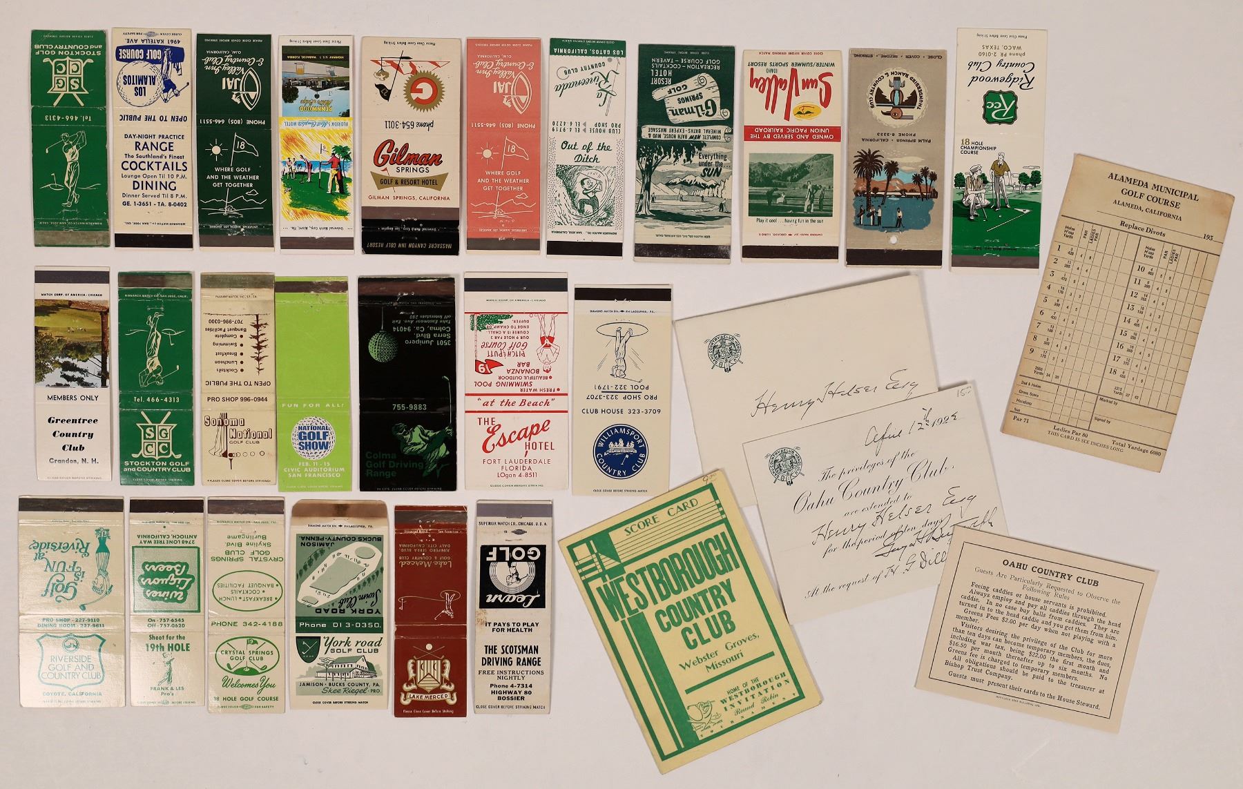 Assorted golf course advertising pieces, including a match book Penwood in Florida, Oahu Country Club and more. Please see photos for more detail and condition