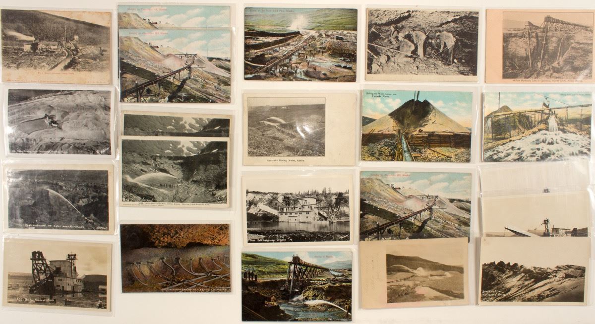 Lot of 22. Several postmarked. F. E. C. Dredge in Fairbanks. Hydraulic mining at Ester, Winter Dump at Fairbanks, Silver Bow Placer Mine, Glacier Creek hydraulic mining, Monte Cristo Mine in Dawson, Anvil Gold Mine, Cheechaco Hill, Cleary Creek, Bonanza Mine, Glacier Mine. (Prag collection) City: State: Alaska Date: hwac# 22270