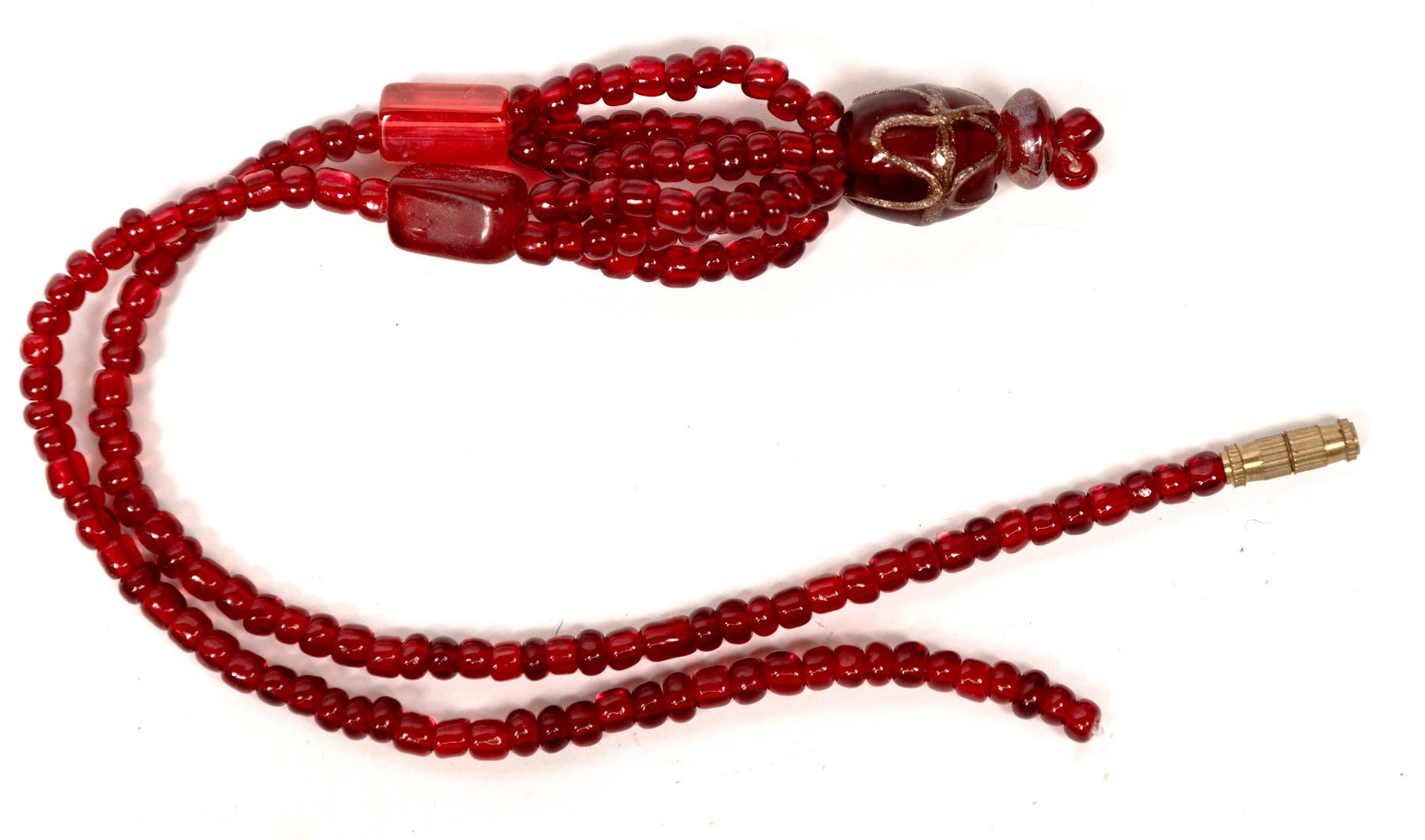 Rare and old Venetian red glass bead necklace, 17". Part of clasp is detached.