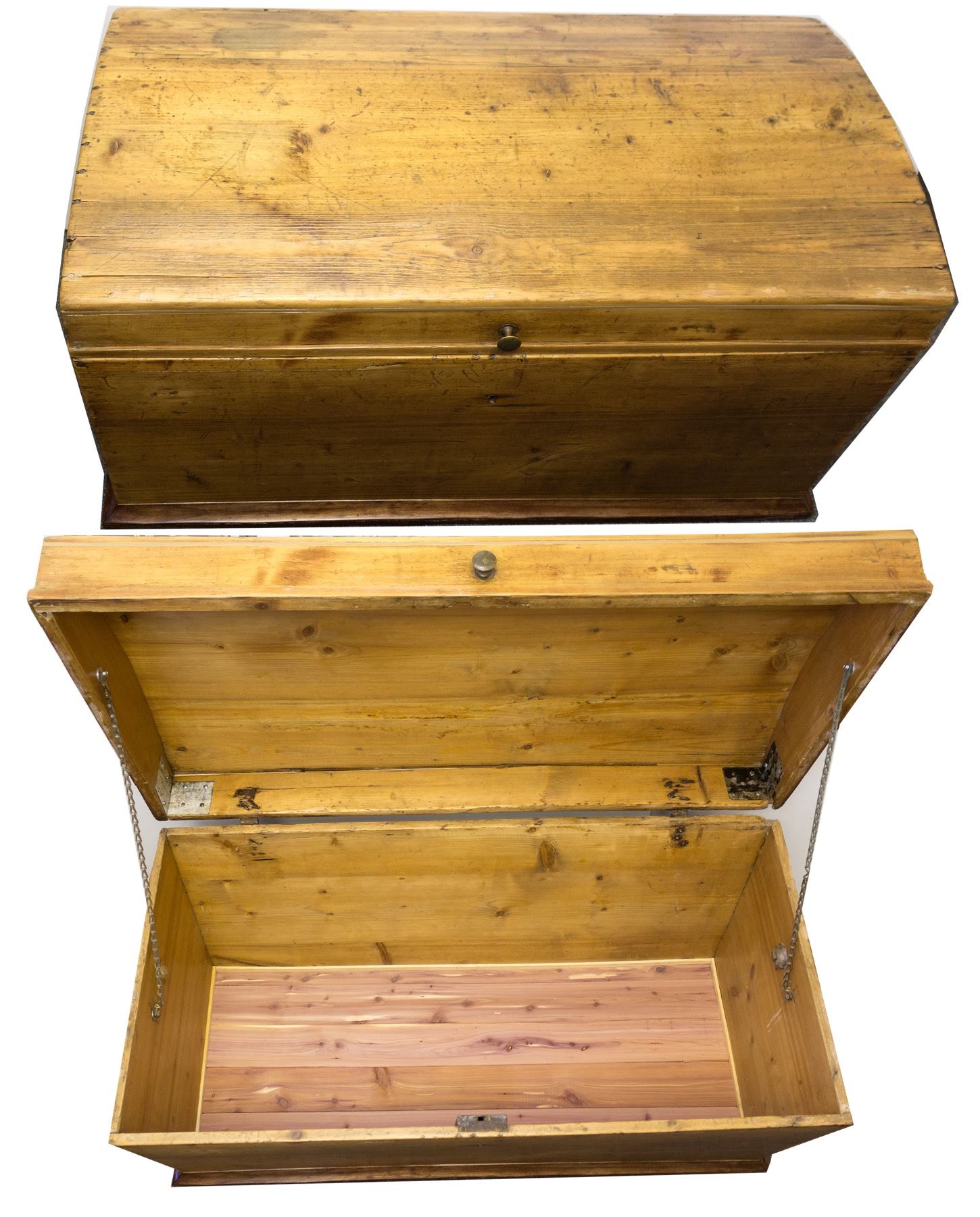 Nice 26 x 45 x 23". Hinges are loose and the bottom redwood would have been added later. A ships trunk with wooden nails reported to us as from the Rough & Ready Toll House. If not picked up, shipping will be extra for this very large item. State: City: HWAC#: 47326 Date: