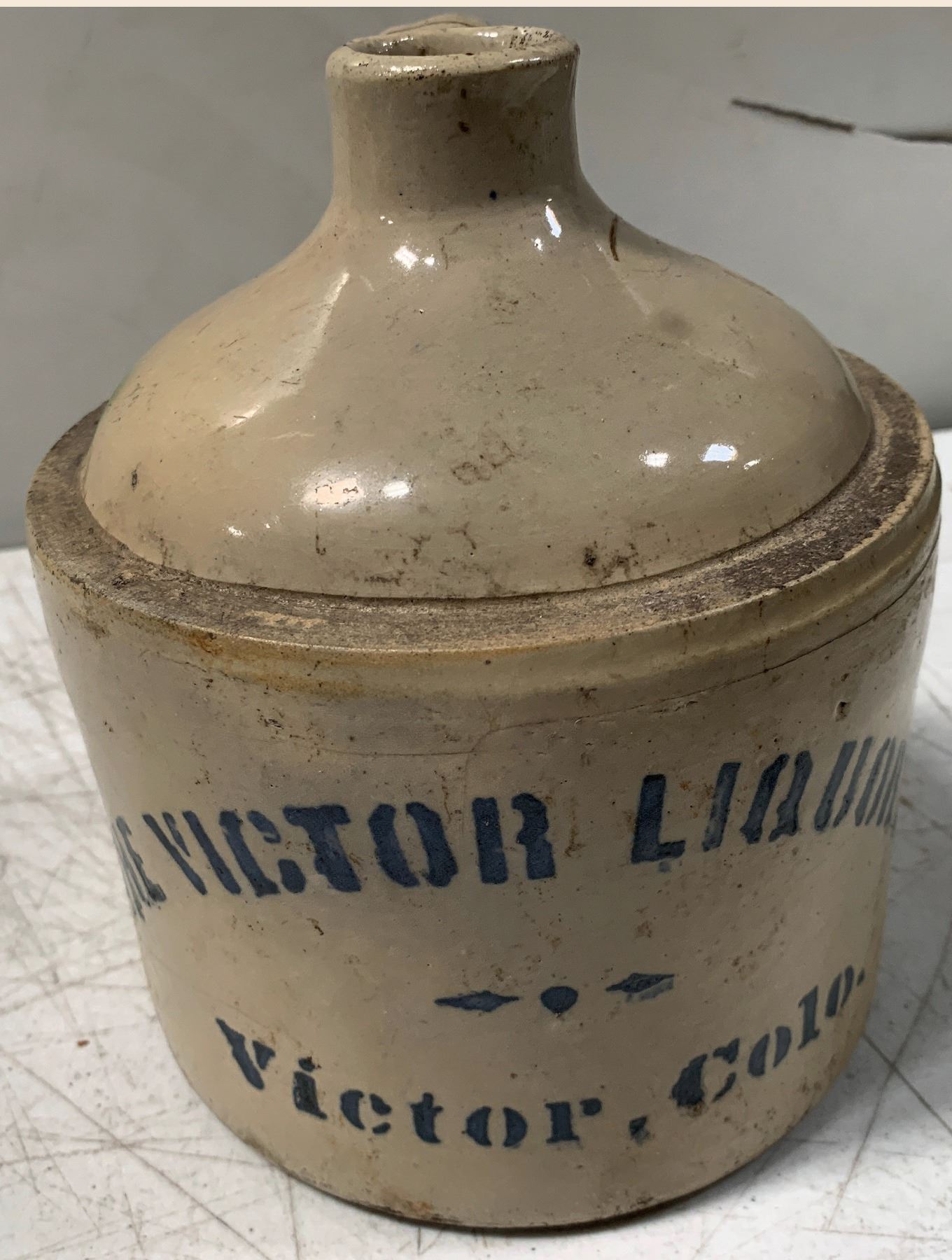 J-262 in Preble. Cracks in body, but no separation. Handle was glued back on. Rare, half gallon. 7.5" tall, 6.5" diameter.